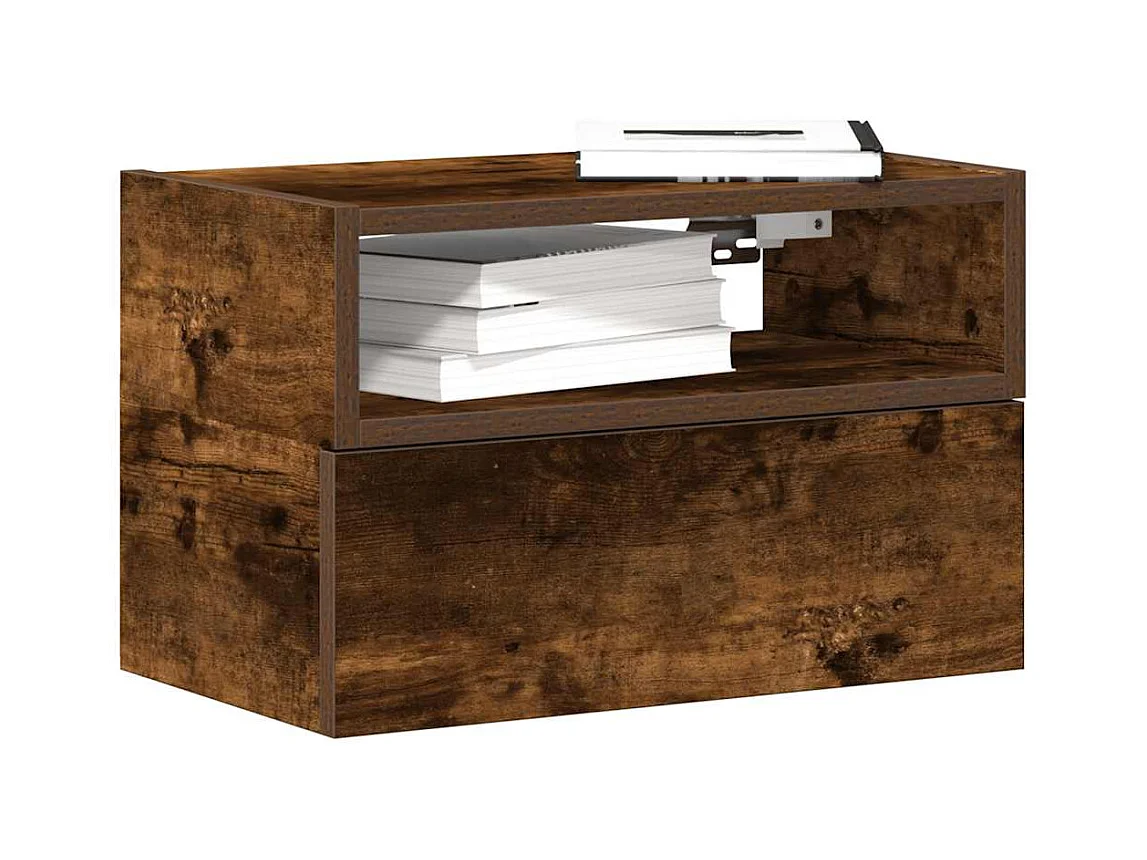 Tables de chevet flottantes lot de 2 avec rangement chêne fumé 45x30x35 cm