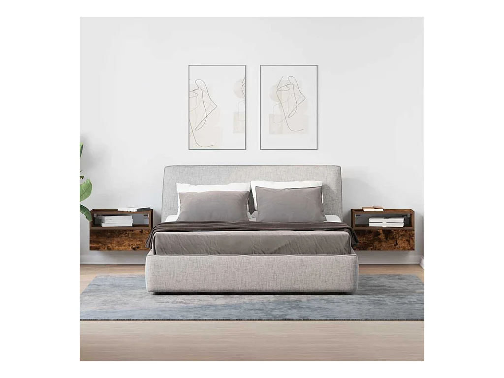 Lot de 2 Tables de chevet flottantes Chêne fumé
