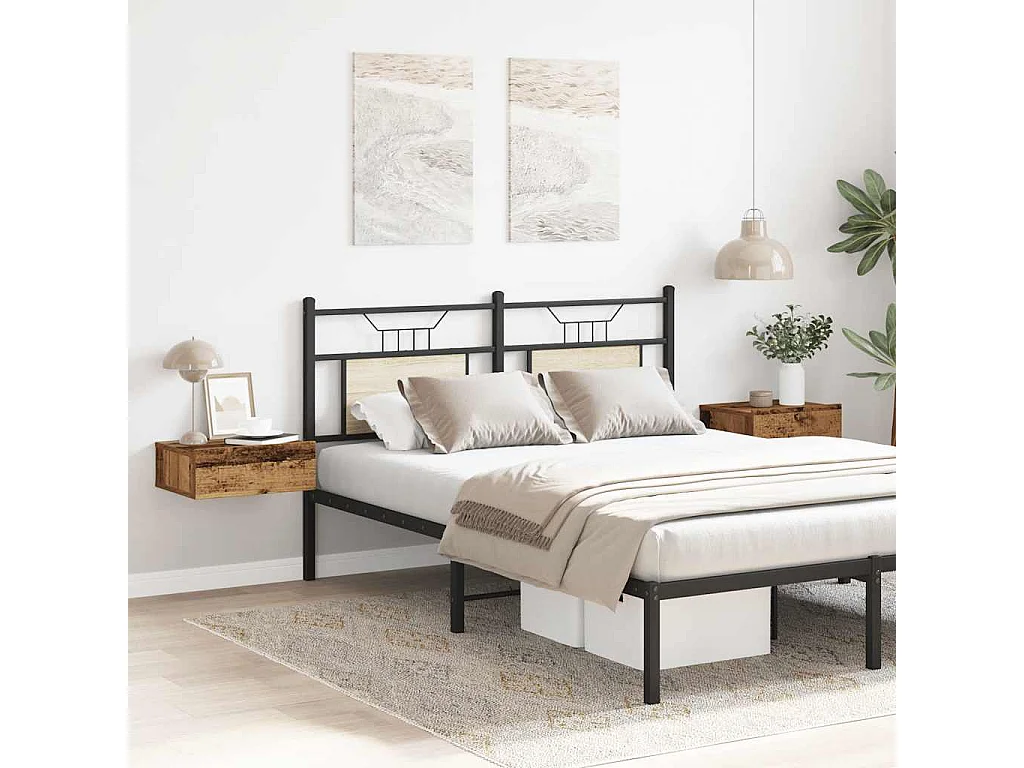Tables de chevet flottantes 2 pièces vieux bois bois d'ingénierie