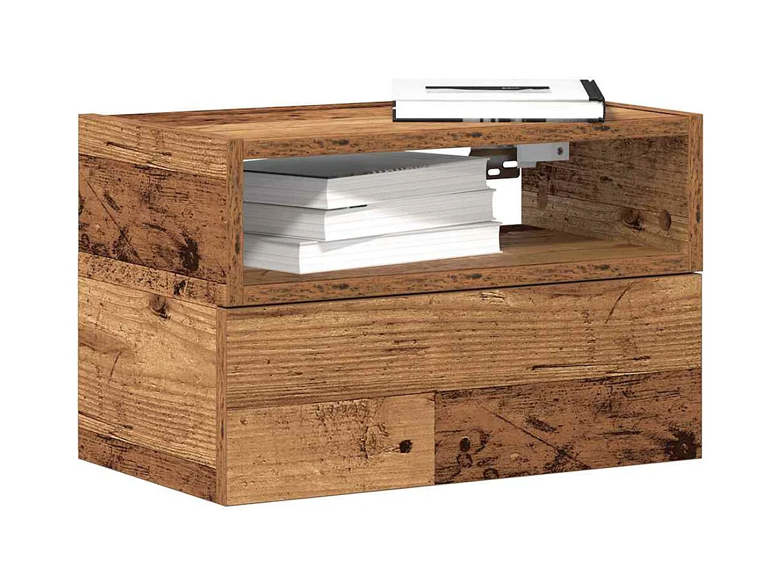 Lot de 2 Tables de chevet flottantes avec rangement Bois ancien 50x39x41 cm