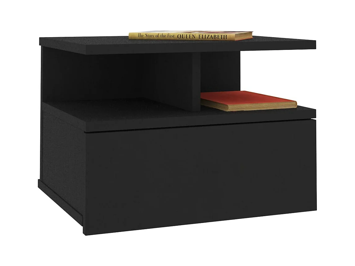 Tables de chevet suspendue Lot de 2 avec rangement noir 40x31x39,5 cm