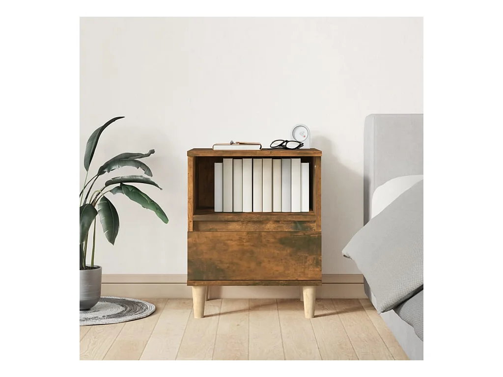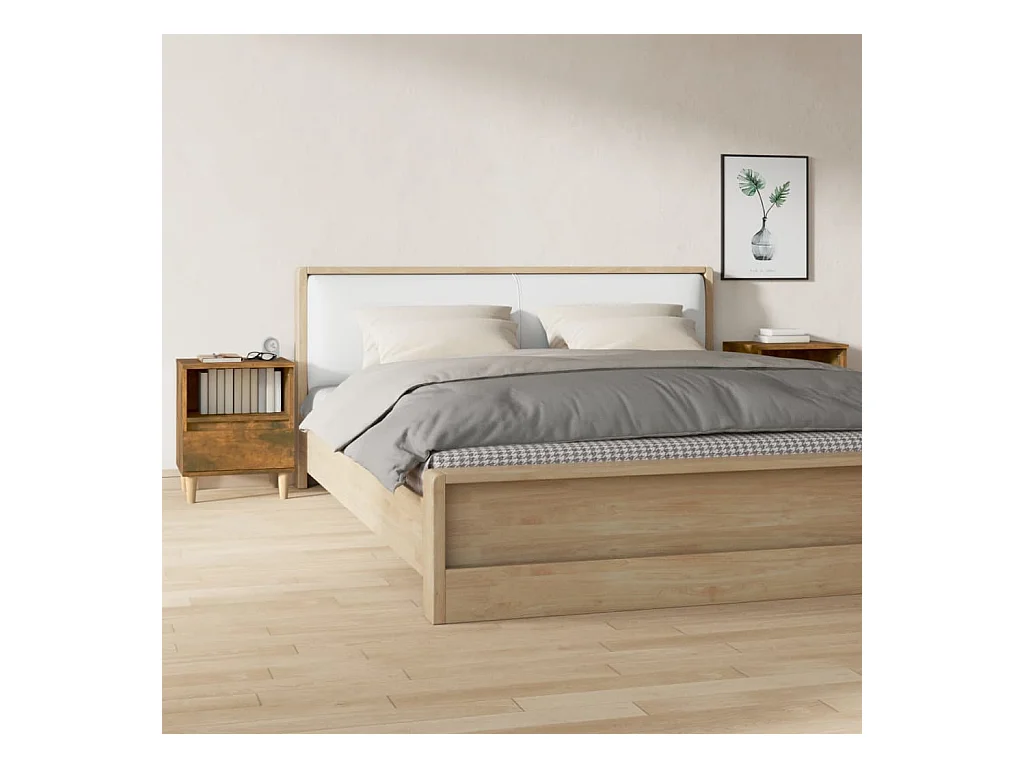 Lot de 2 Tables de chevet avec Compartiments ouverts chêne fumé 40x35x50 cm bois ingénierie