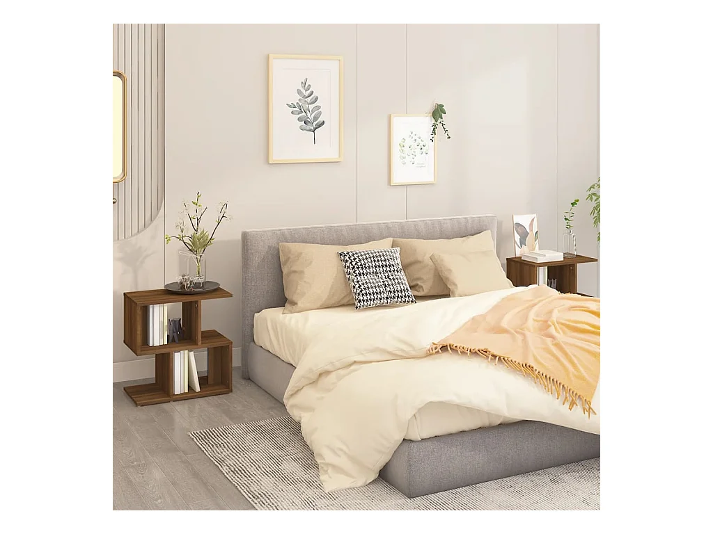 Tables de chevet lot de 2 avec compartiments ouverts chêne marron 39x39x47,5cm bois ingénierie