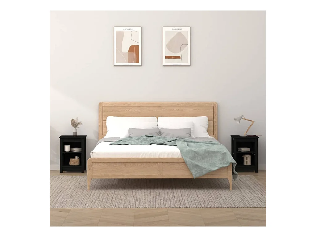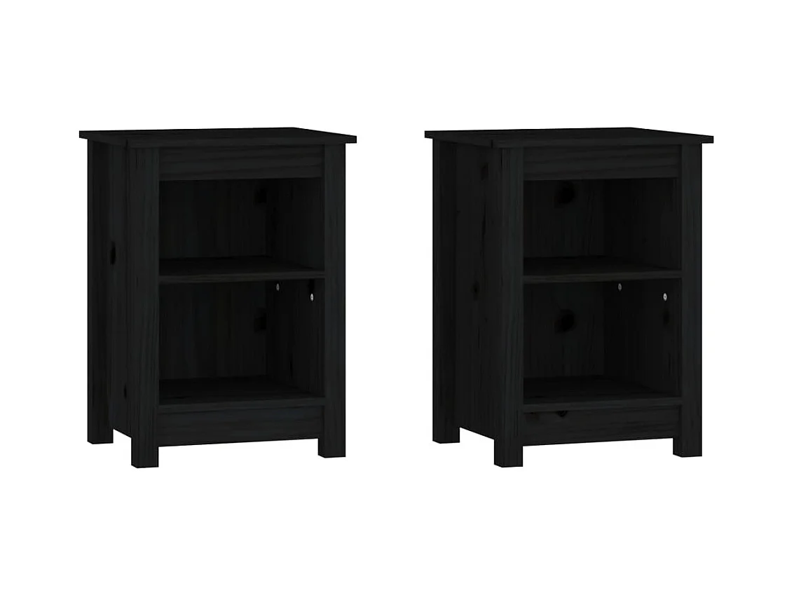 Tables de chevet lot de 2 avec compartiments ouverts Noir 40x35x55 cm Bois de pin solide