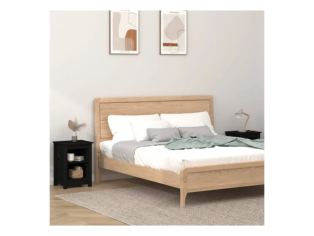 Tables de chevet lot de 2 avec compartiments ouverts Noir 40x30x40 cm Bois de pin solide