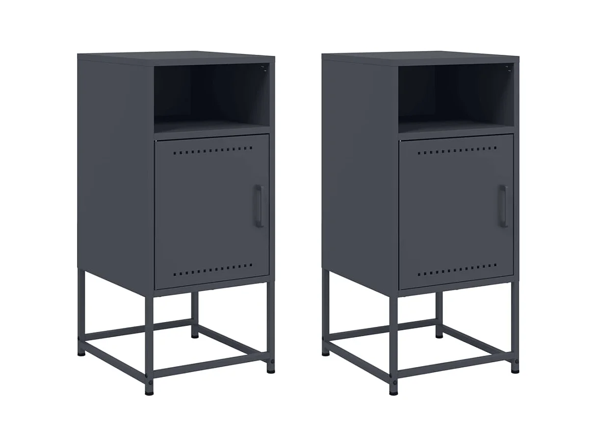 Tables de chevet lot de 2 avec tiroirs anthracite 36x39x68 cm acier