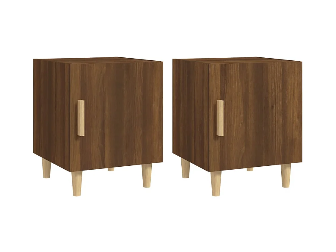 Tables de chevet lot de 2 avec pieds en bois Chêne fumé 40x30x50 cm