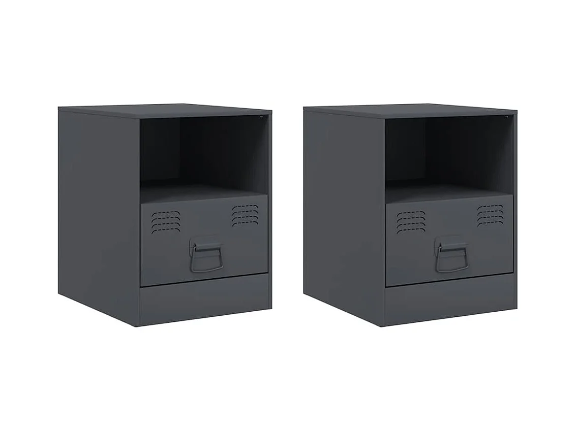 Tables de chevet lot de 2 avec tiroirs anthracite 34,5x39x44 cm acier