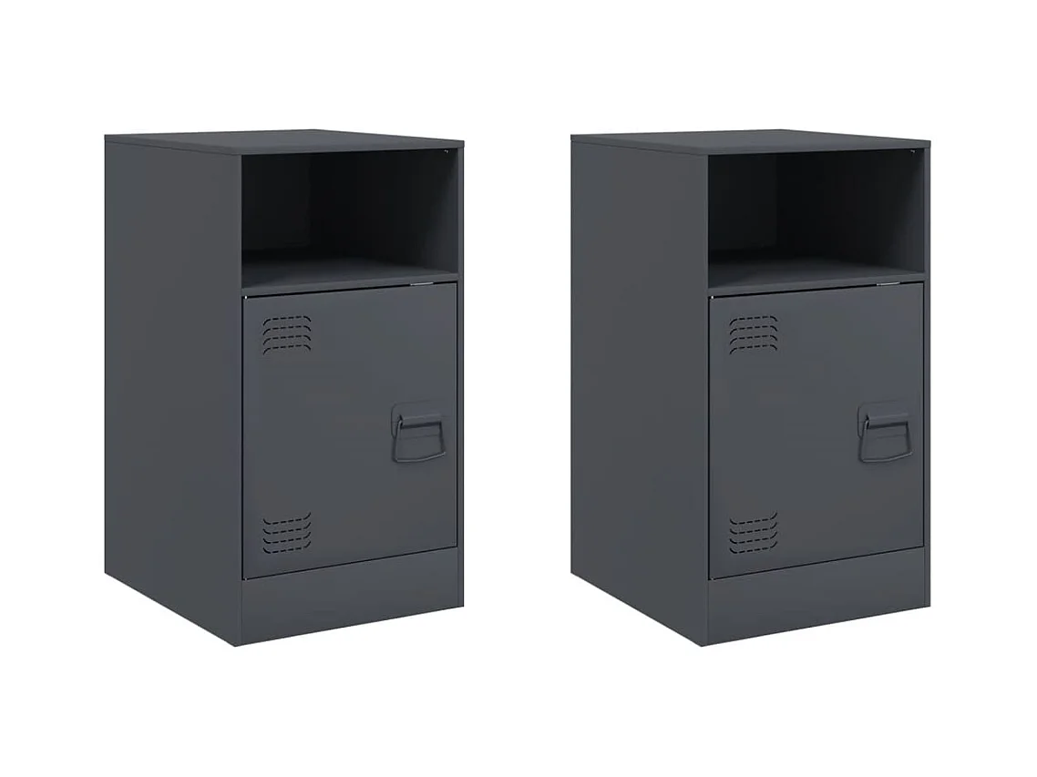 Tables de chevet lot de 2 avec tiroirs anthracite 34,5x39x62 cm acier