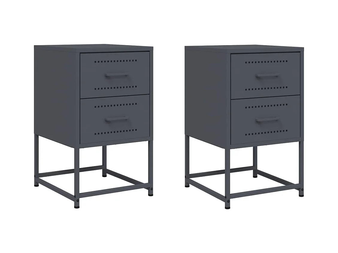 Tables de chevet lot de 2 avec tiroirs anthracite 36x39x60,5 cm acier