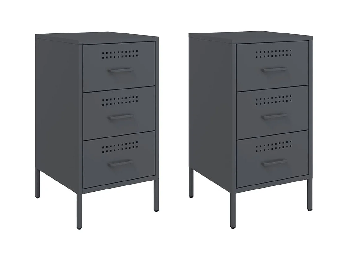 Tables de chevet lot de 2 avec tiroirs anthracite 36x39x68 cm acier
