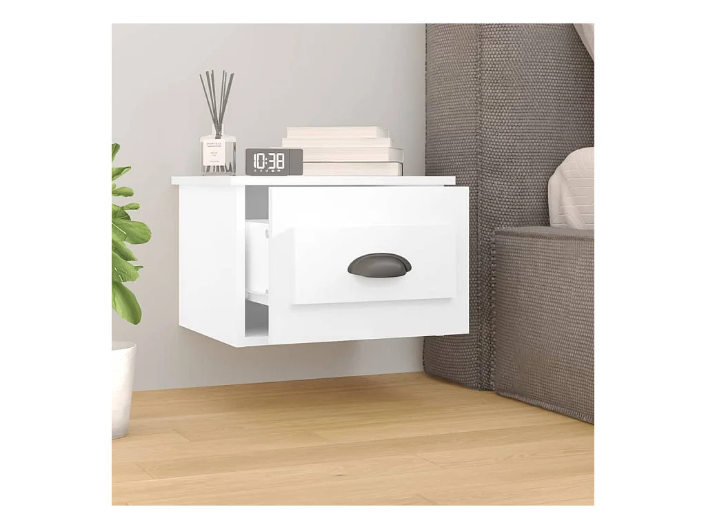 Tables de chevet murales 2 pcs blanc brillant 41,5x36x53