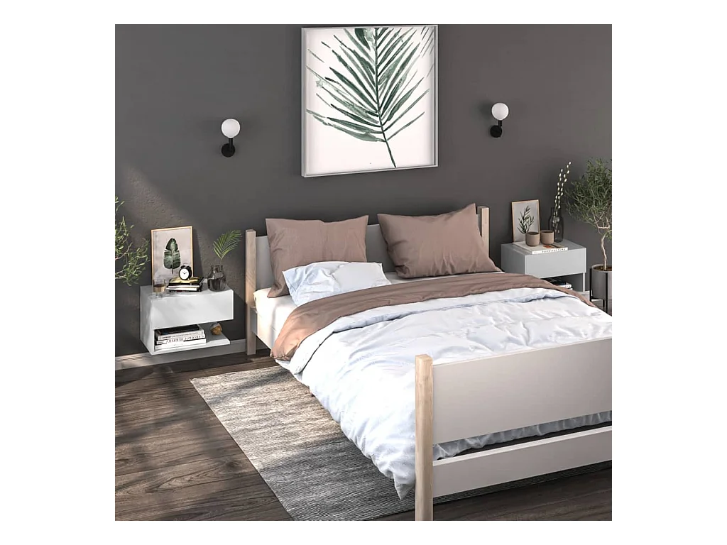 Tables de chevet murales 2 pcs Blanc brillant 50x36x40 cm