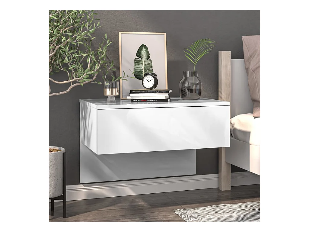 Tables de chevet murales 2 pcs Blanc brillant Bois d'ingénierie