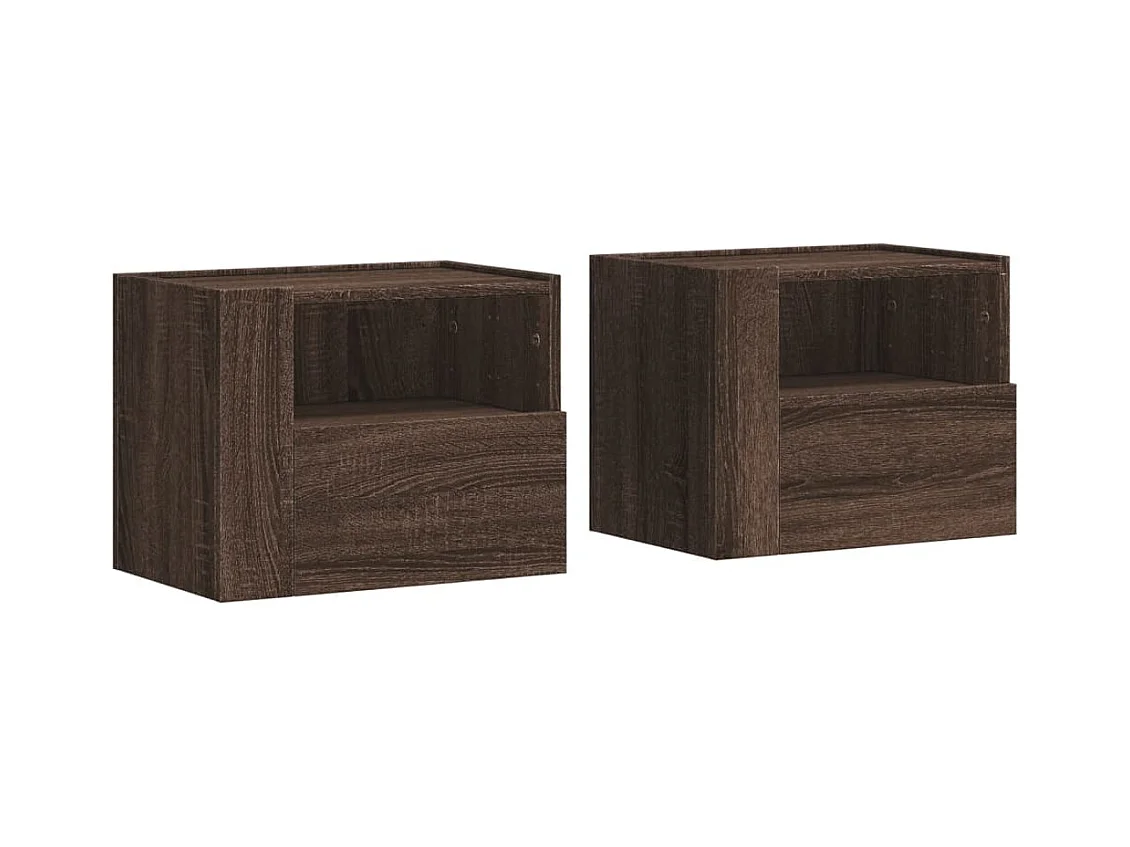 Tables de chevet flottantes lot de 2 avec rangement chêne fumé 45x30x35 cm