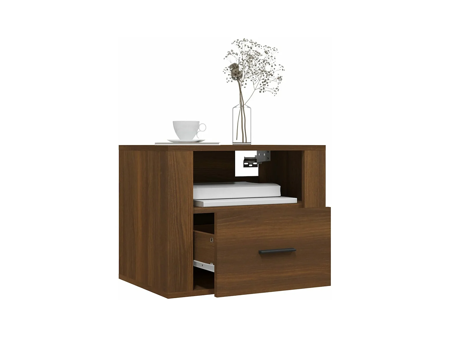 Table de chevet murale avec lumières LED chêne marron