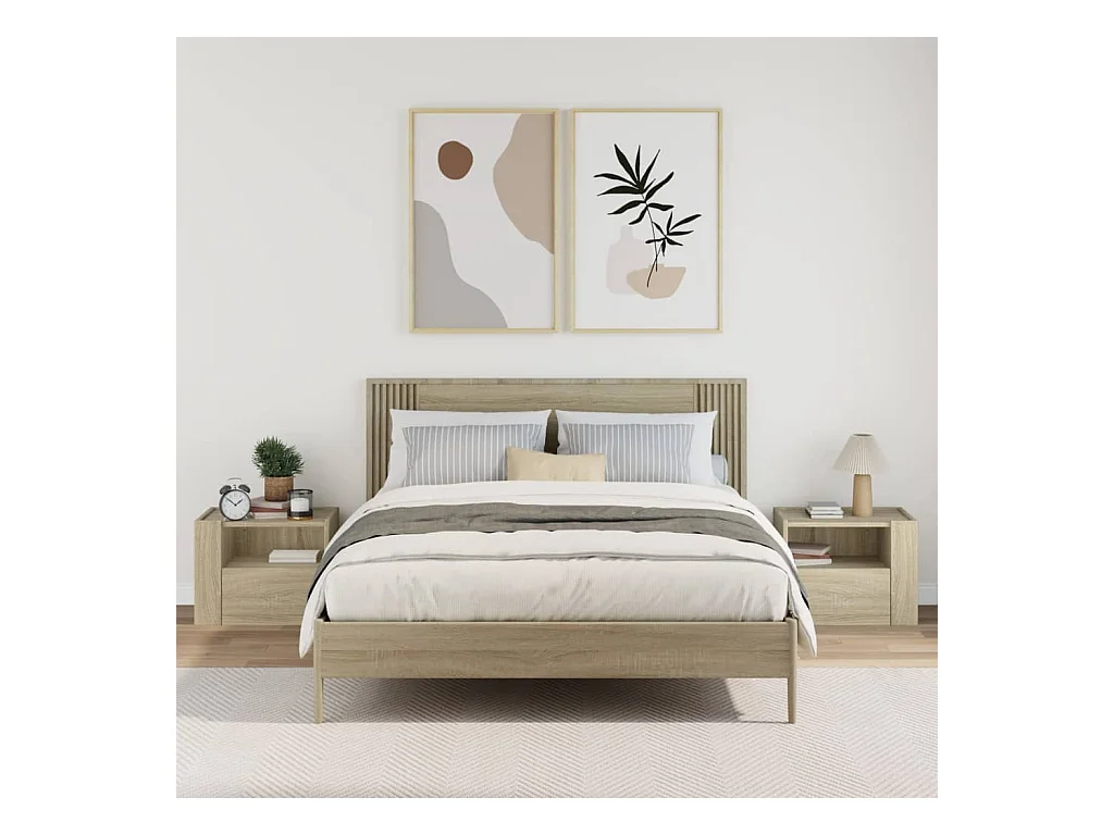 Tables de chevet flottantes lot de 2 avec rangement chêne sonoma 45x30x35 cm