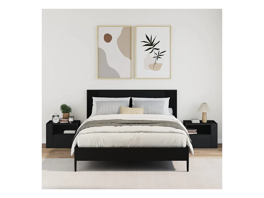 Tables de chevet flottantes-Tables de nuit murale 2 pcs Noir Bois d'ingénierie