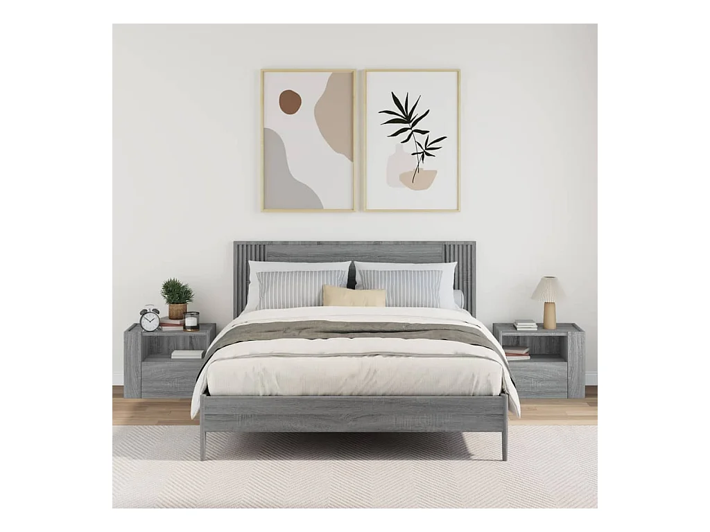 Tables de chevet flottantes lot de 2 avec rangement sonoma gris 45x30x35 cm