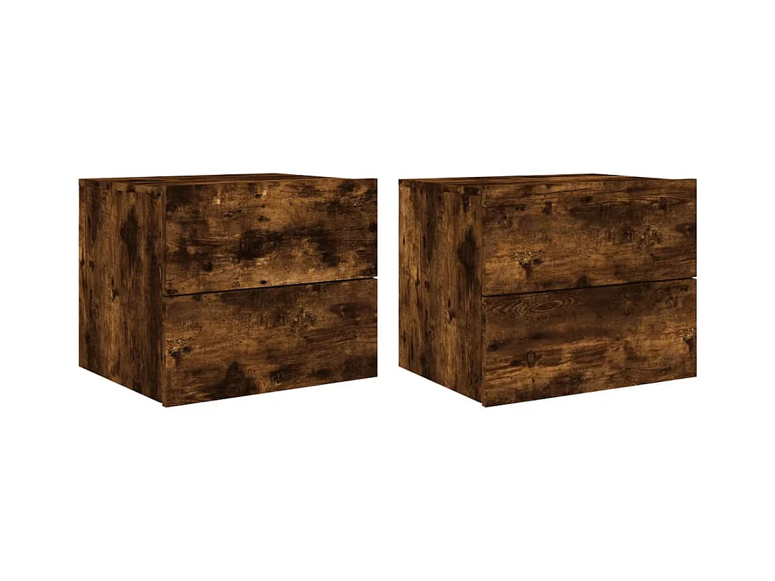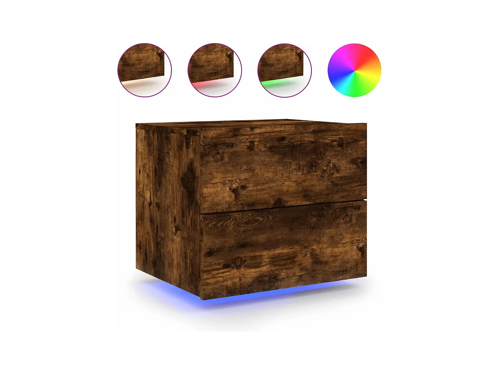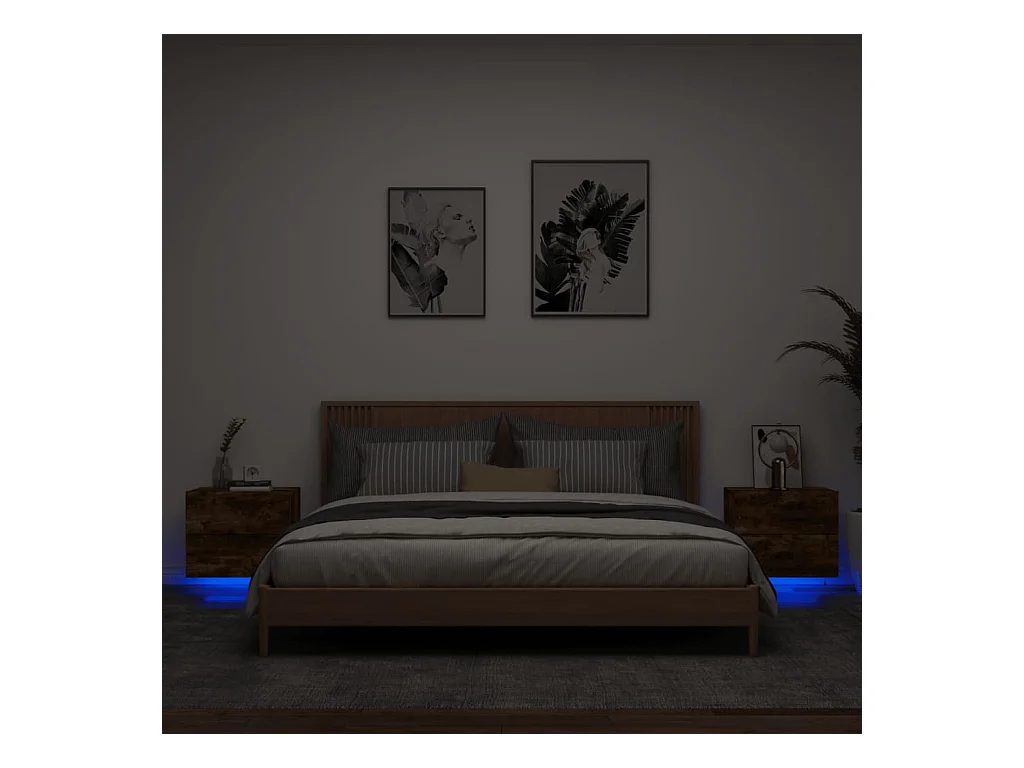 Tables de chevet murales avec lumières LED 2 pcs chêne fumé
