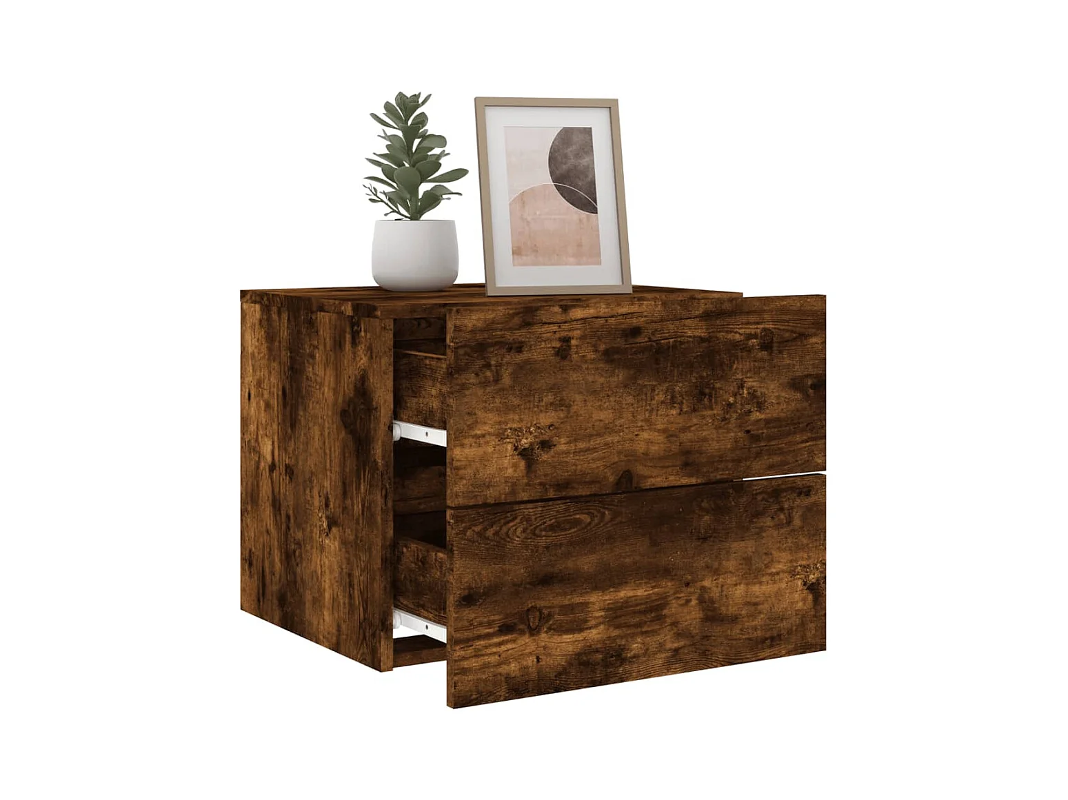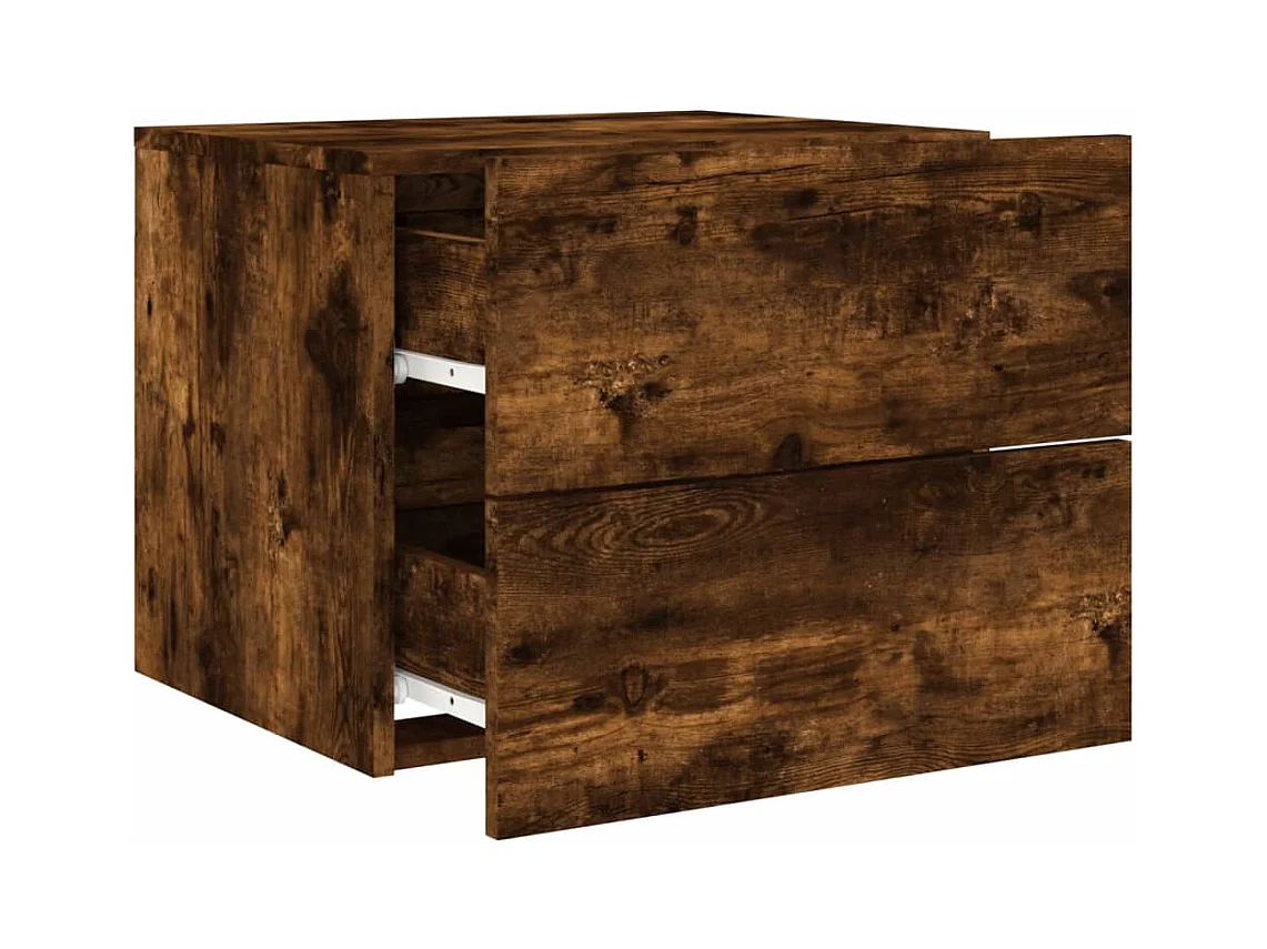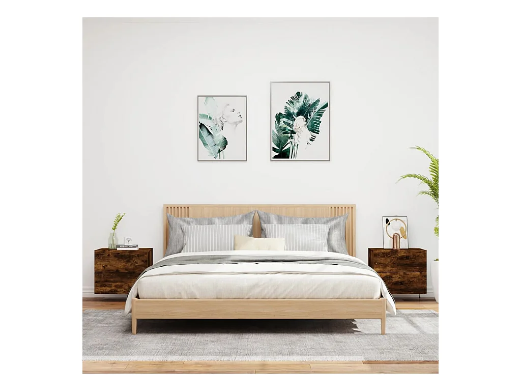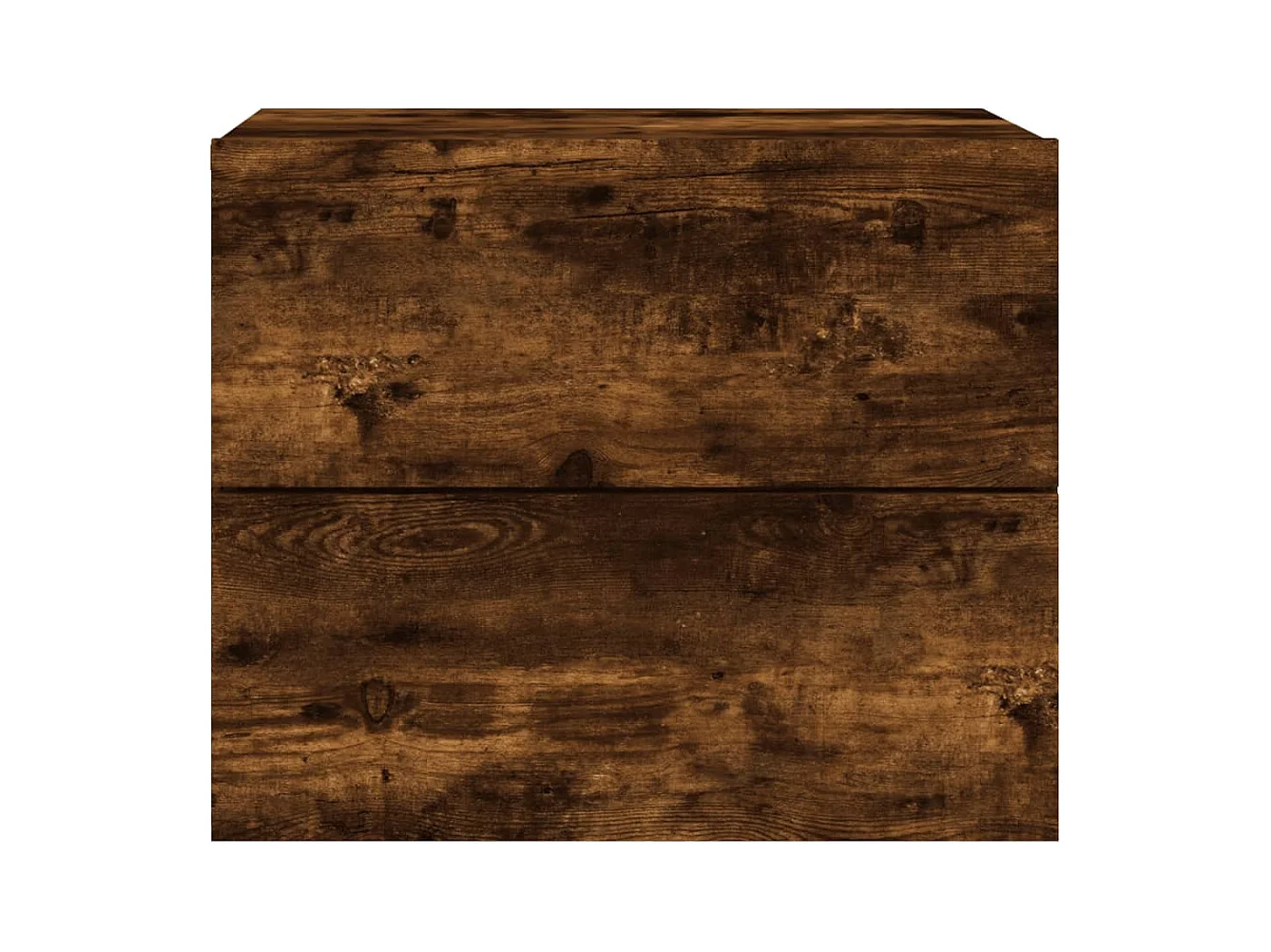Tables de chevet murales avec lumières LED 2 pcs chêne fumé