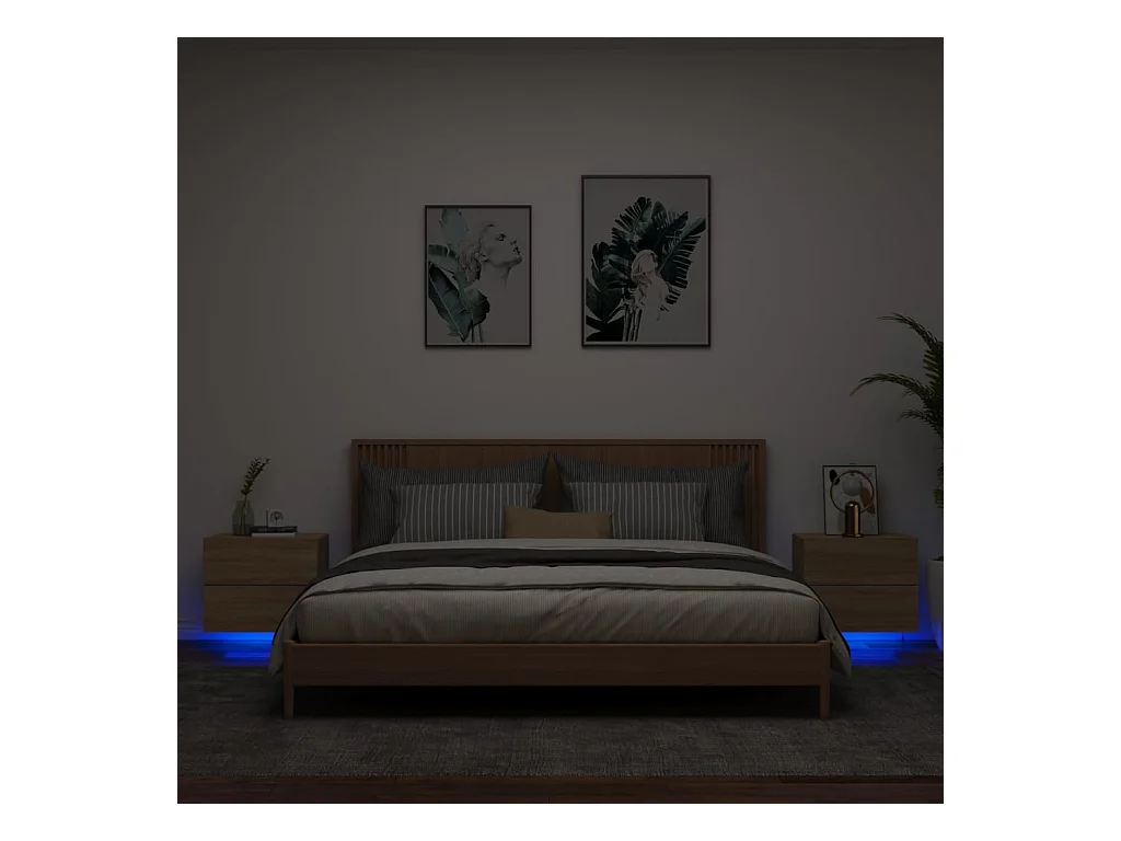 Tables de chevet murales avec lumières LED 2 pcs chêne fumé