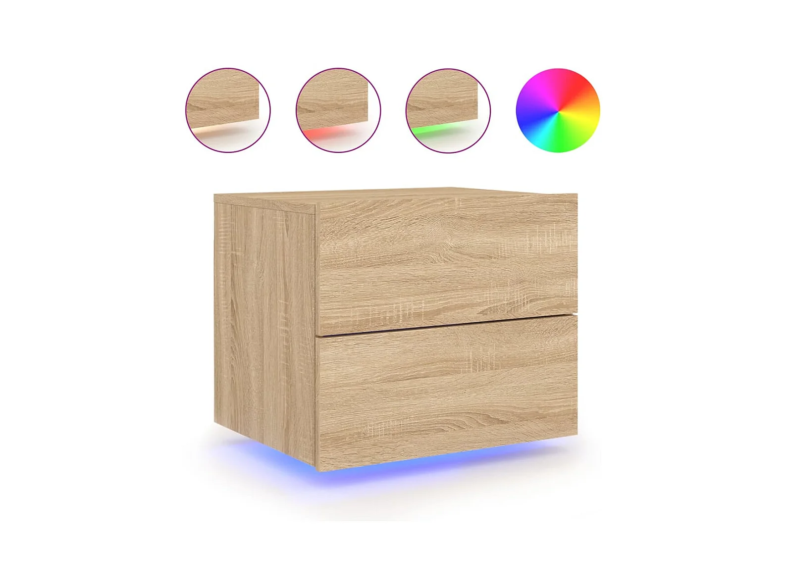 Tables de chevet murales avec lumières LED 2 pcs chêne sonoma