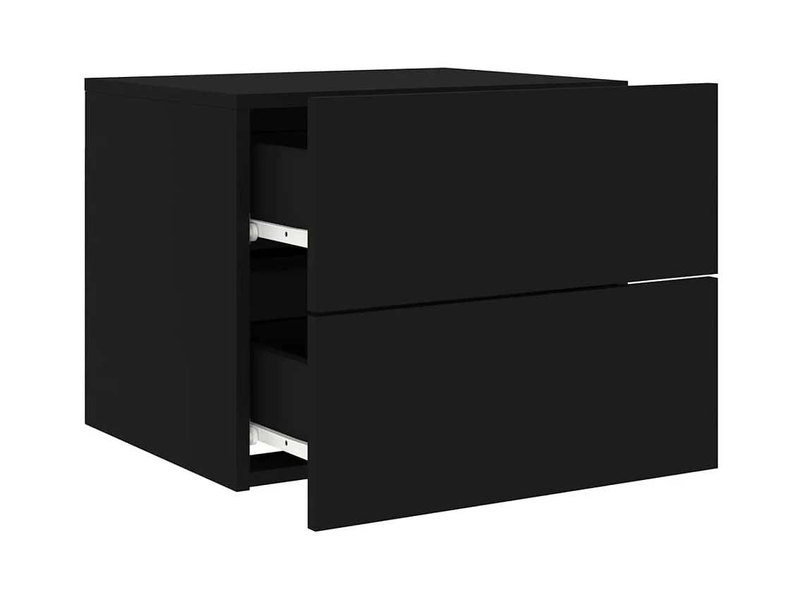 Tables de chevet murales avec lumières LED 2 pcs noir