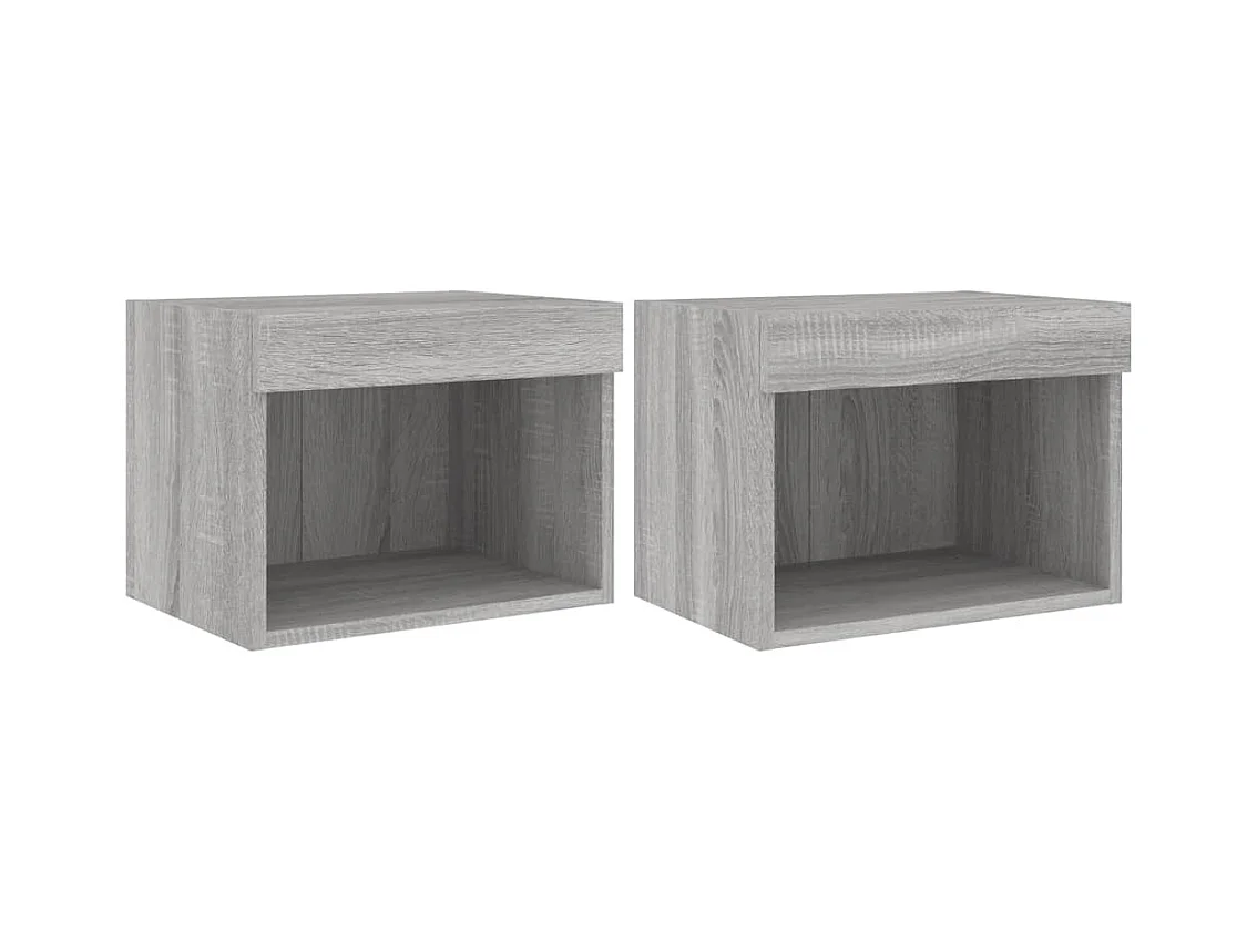 Lot de 2 Tables de chevet murales avec lumières LED sonoma gris GHR98422