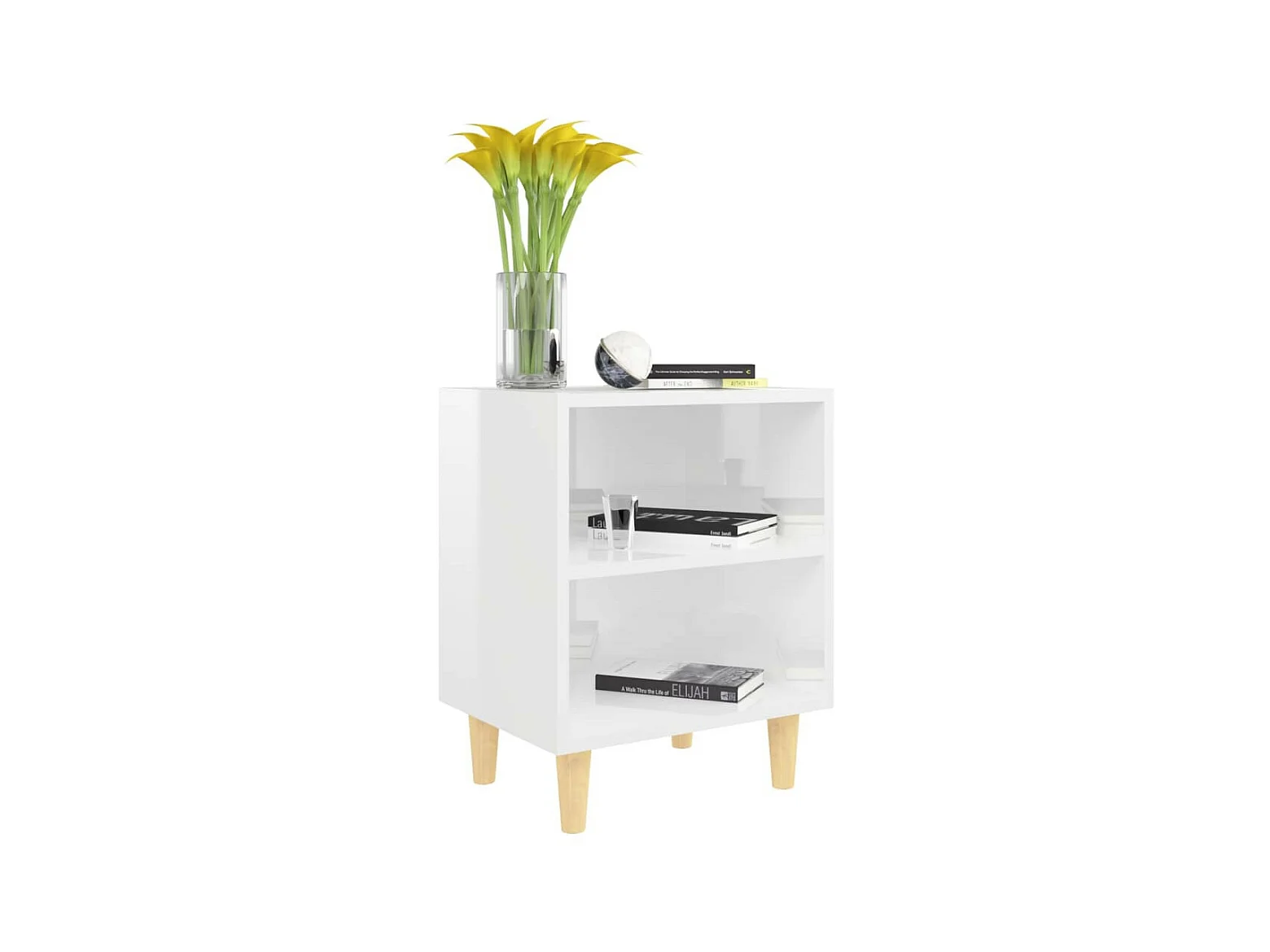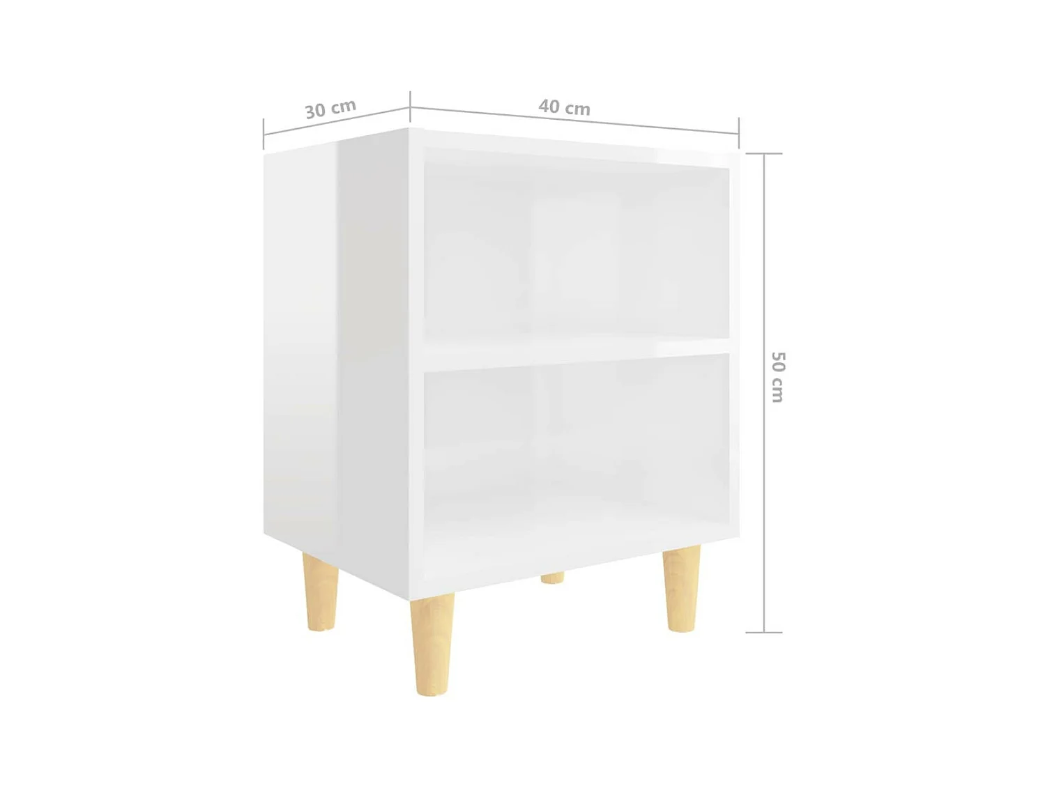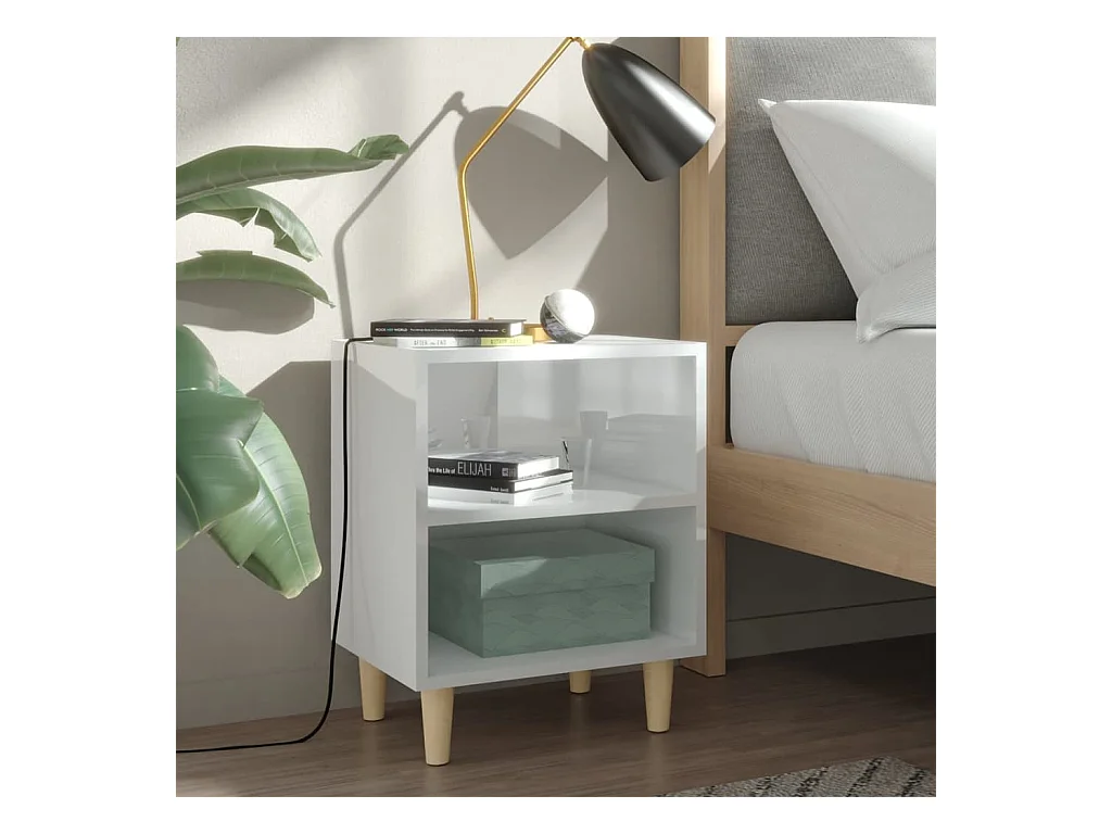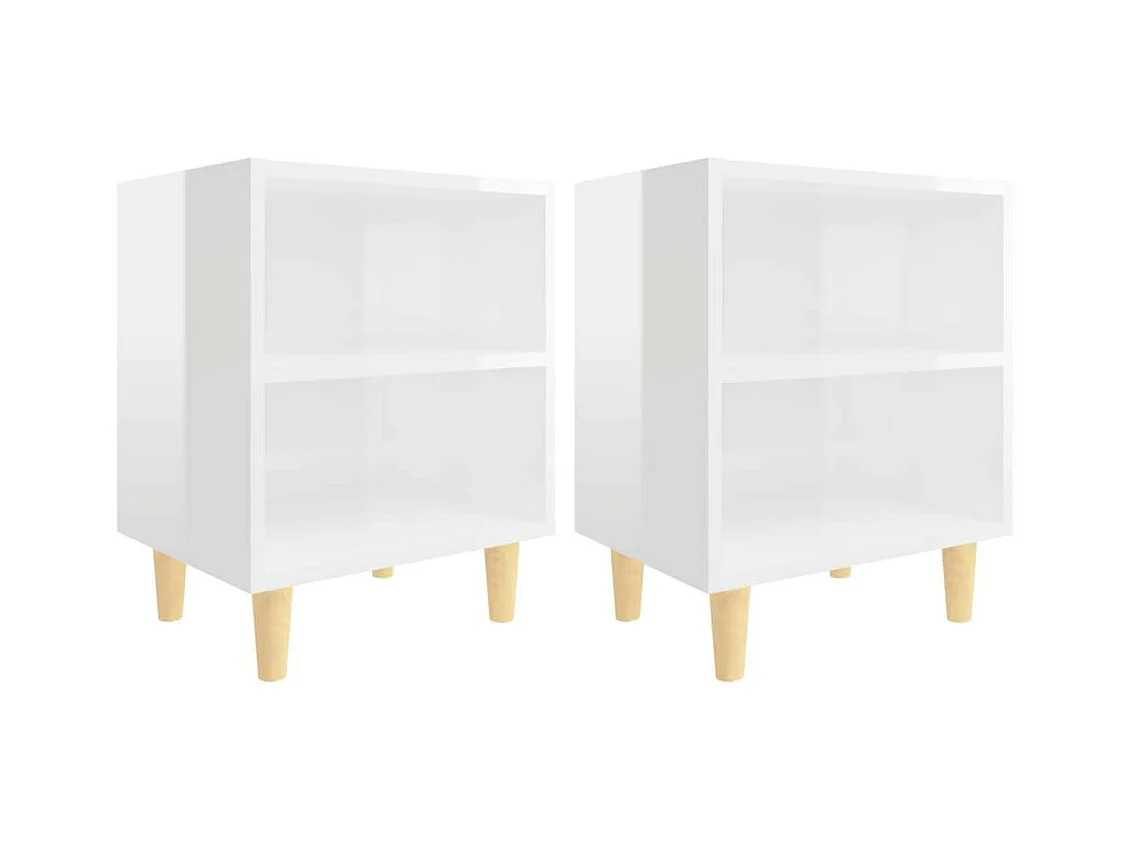 Tables de chevet pieds en bois 2 pcs Blanc brillant 40x30x50 2