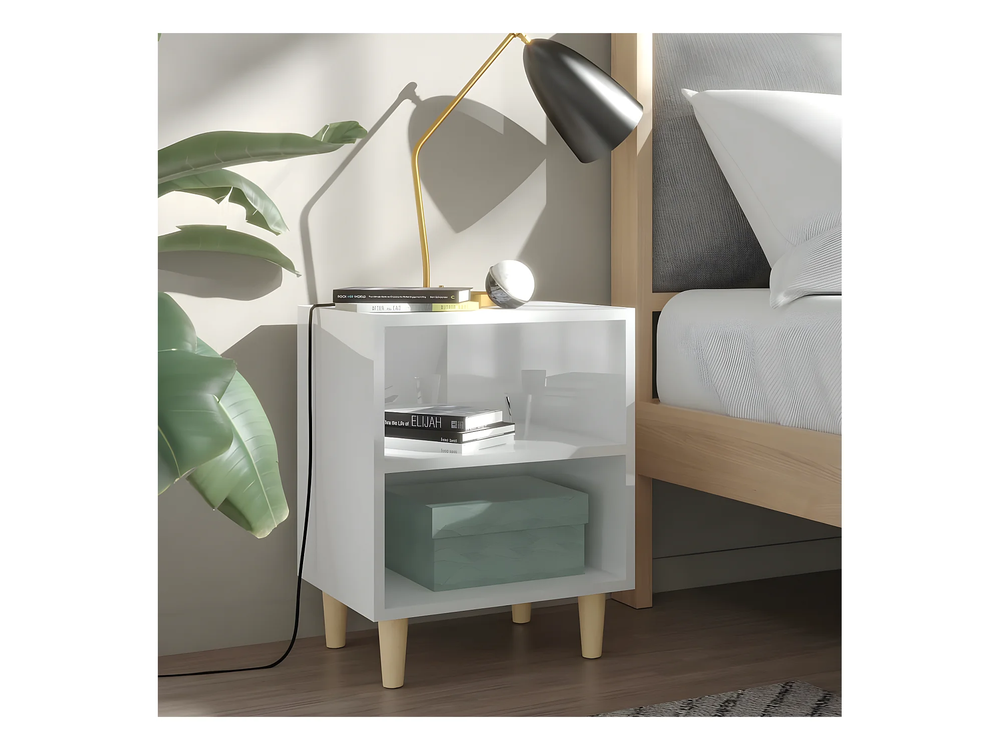 Lot de 2 Tables de chevet pieds en bois Blanc brillant 40x30x50 cm WVGQ7419