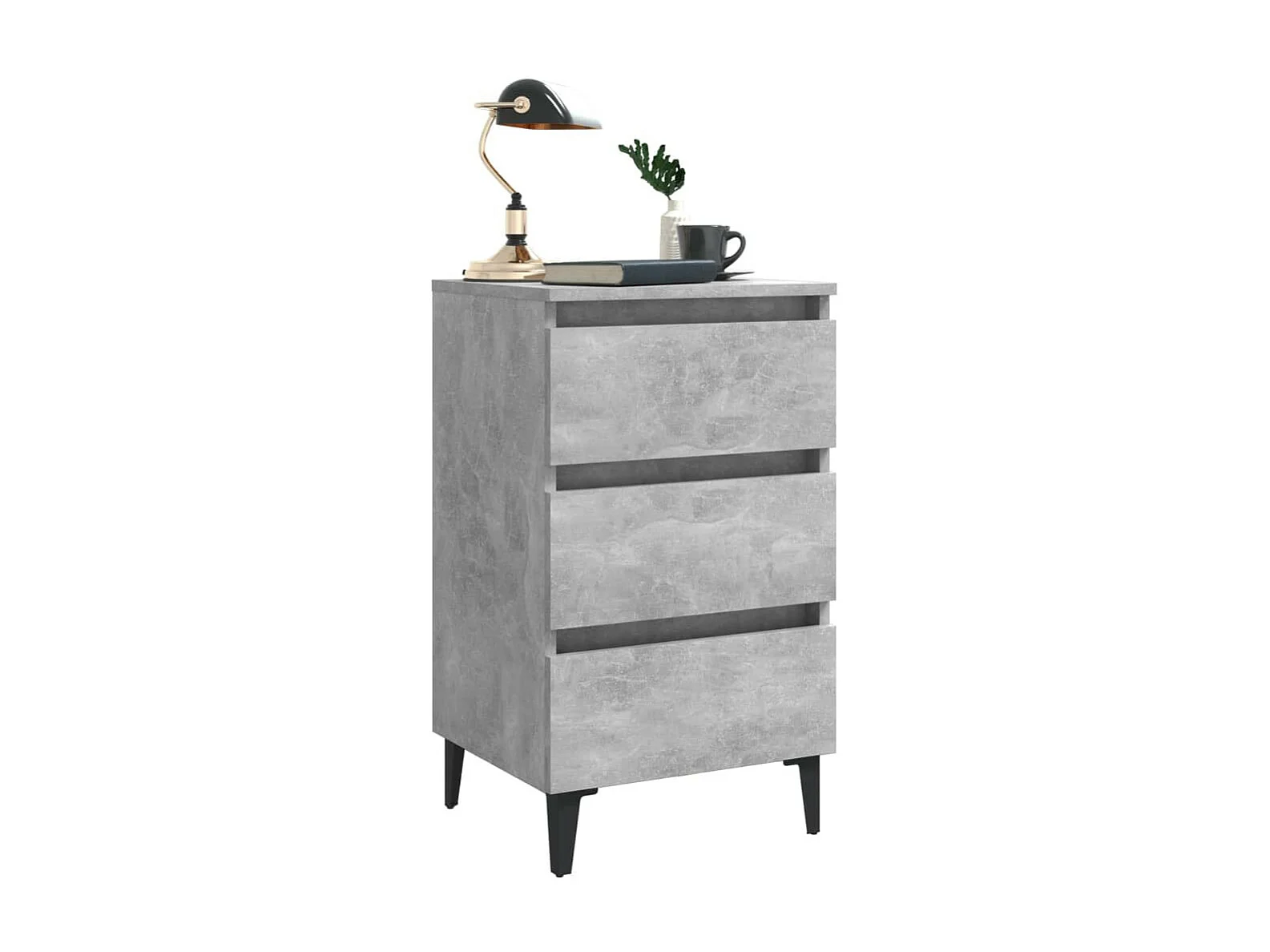 Tables de chevet pieds en métal 2 pcs Gris béton 40x35x69