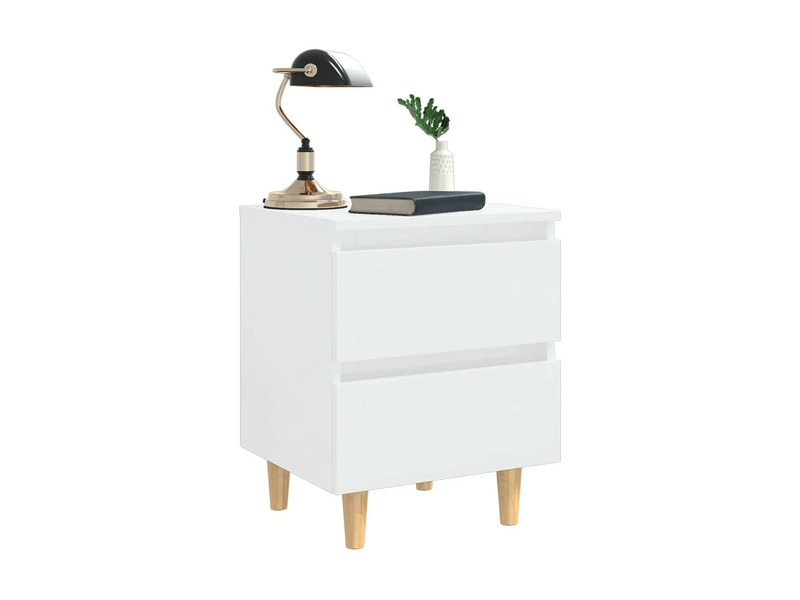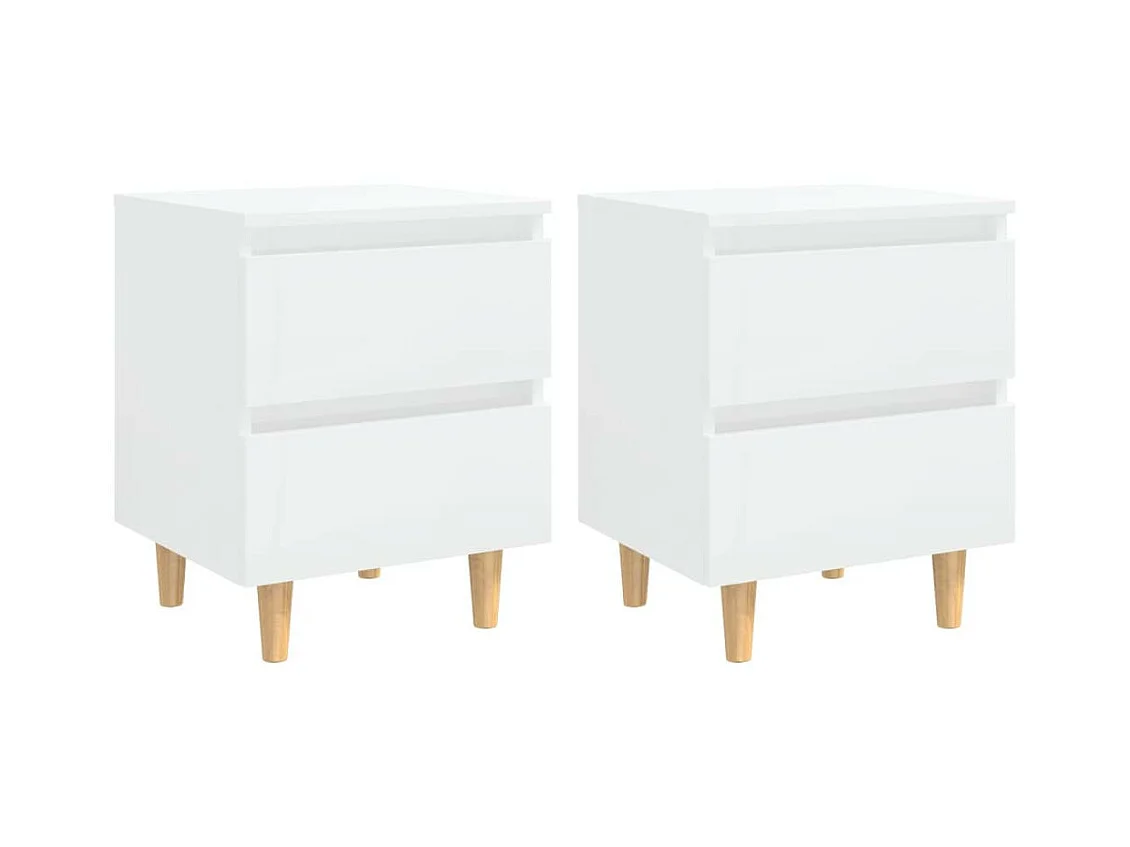 Tables de chevet pieds en pin 2 pcs Blanc brillant 40x35x50