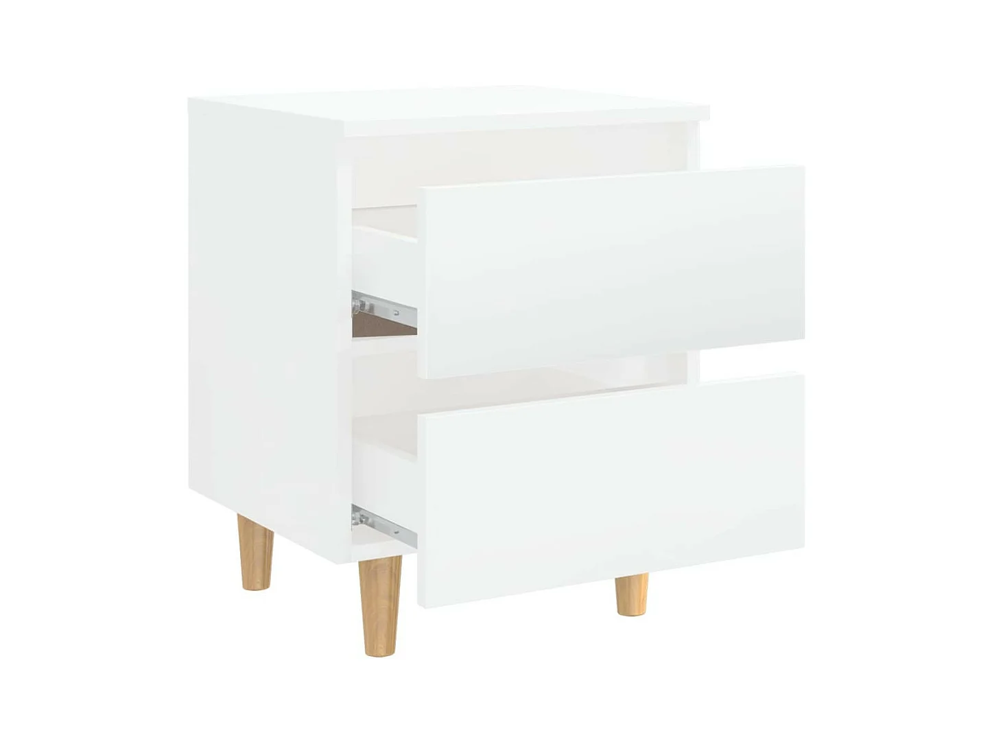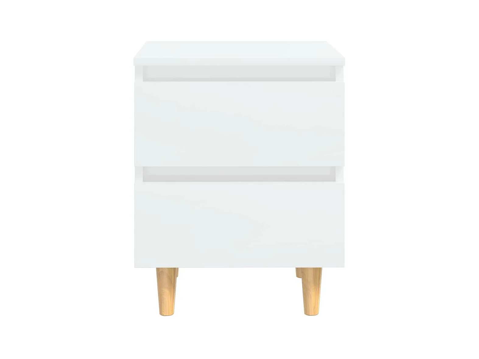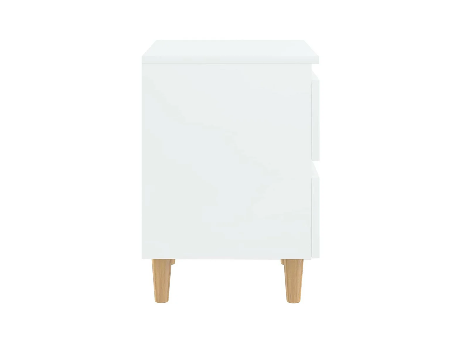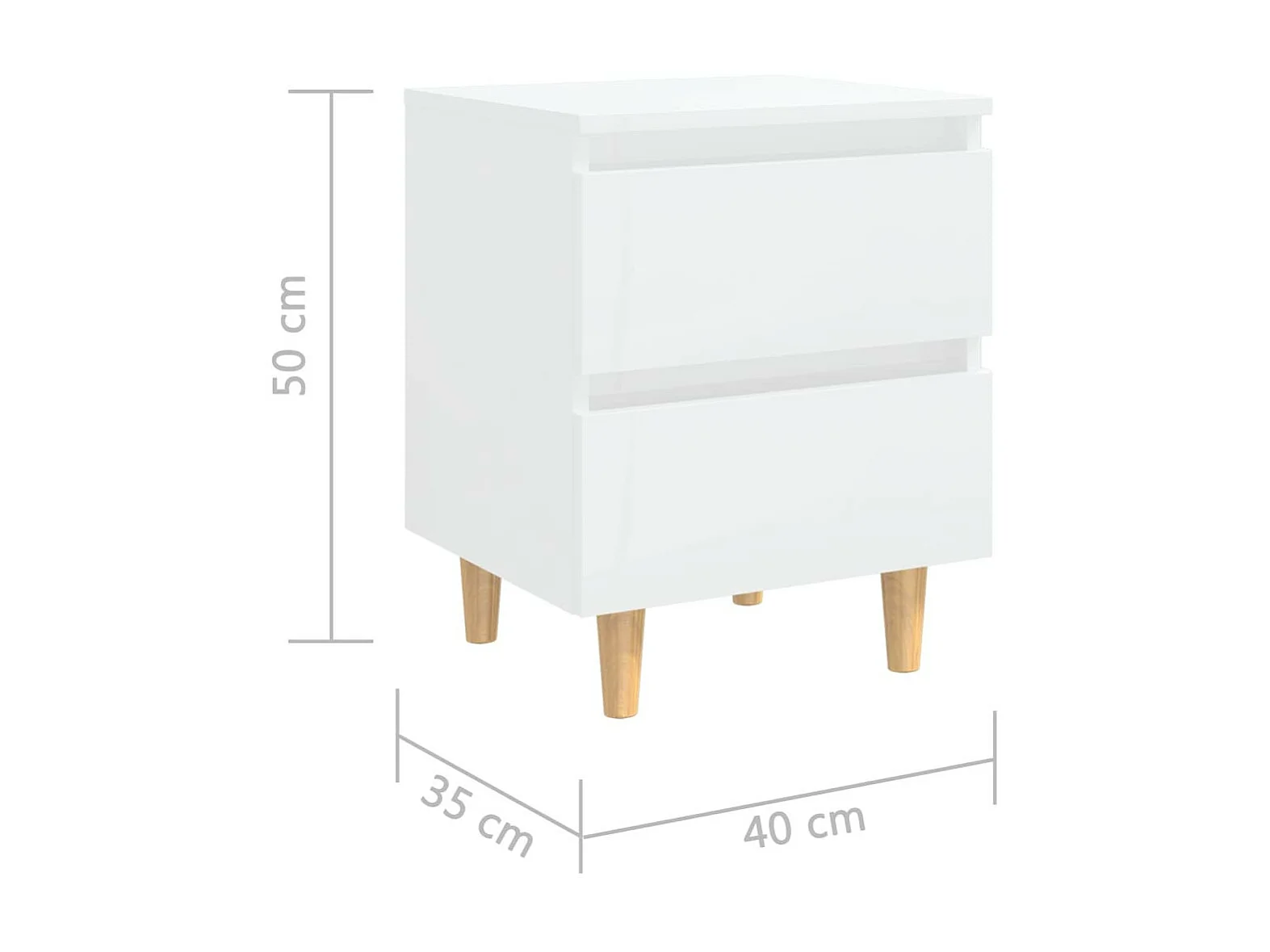 Table de chevet avec pieds en bois Blanc brillant 40x35x69