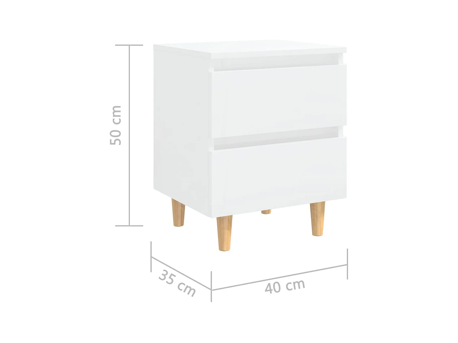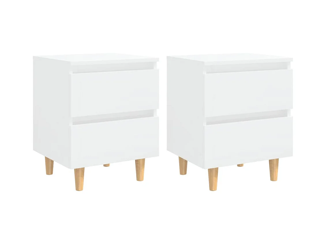 Tables de chevet pieds en pin 2 pcs Blanc brillant 40x35x50 cm