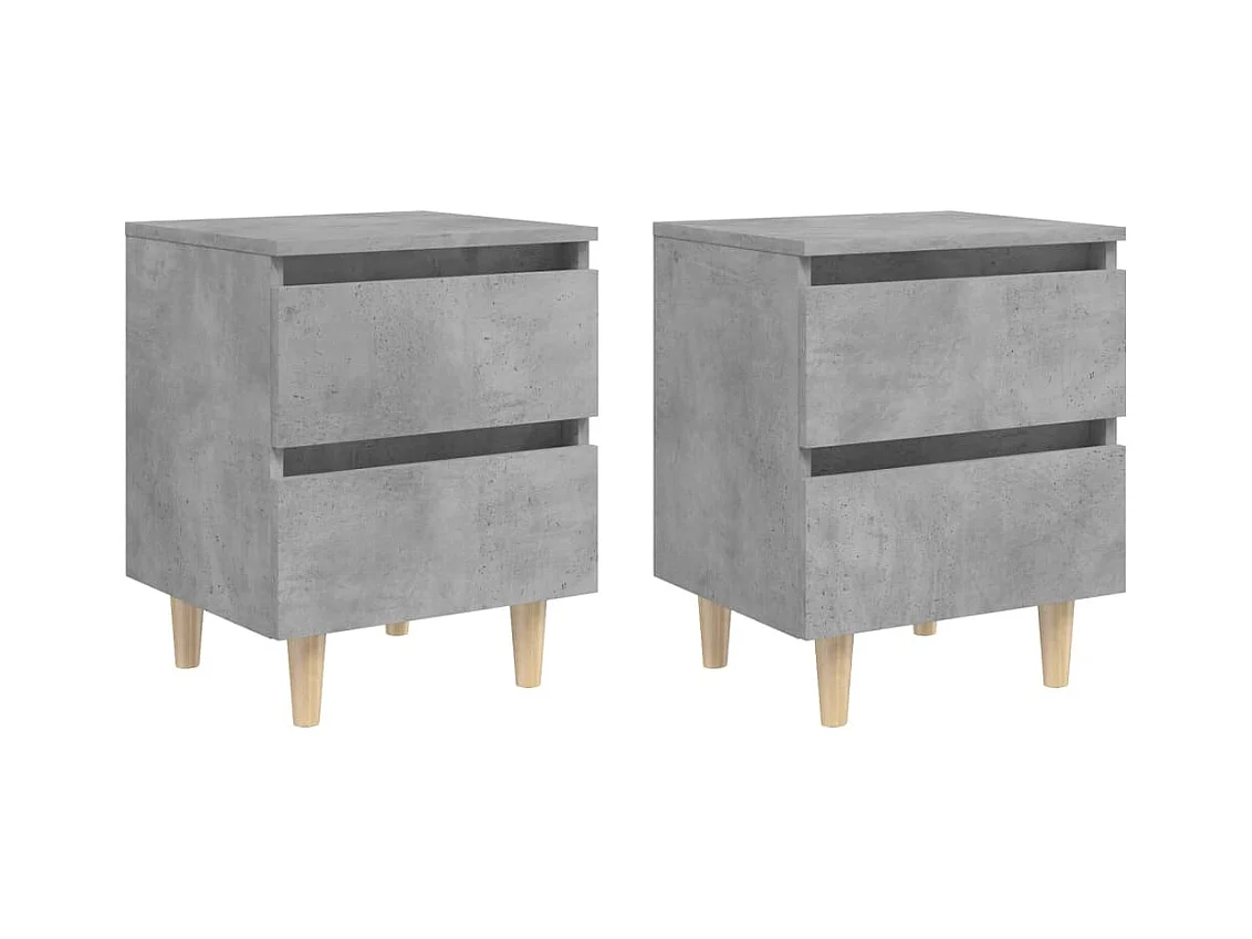 Tables de chevet-Tables de nuit 2 pcs avec tiroirs pieds en pin gris béton 40x35x50 cm