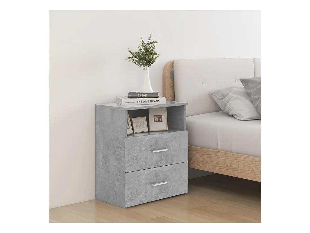 Lot de 2 Tables de chevet avec compartiments ouverts gris béton 43x36x50 cm