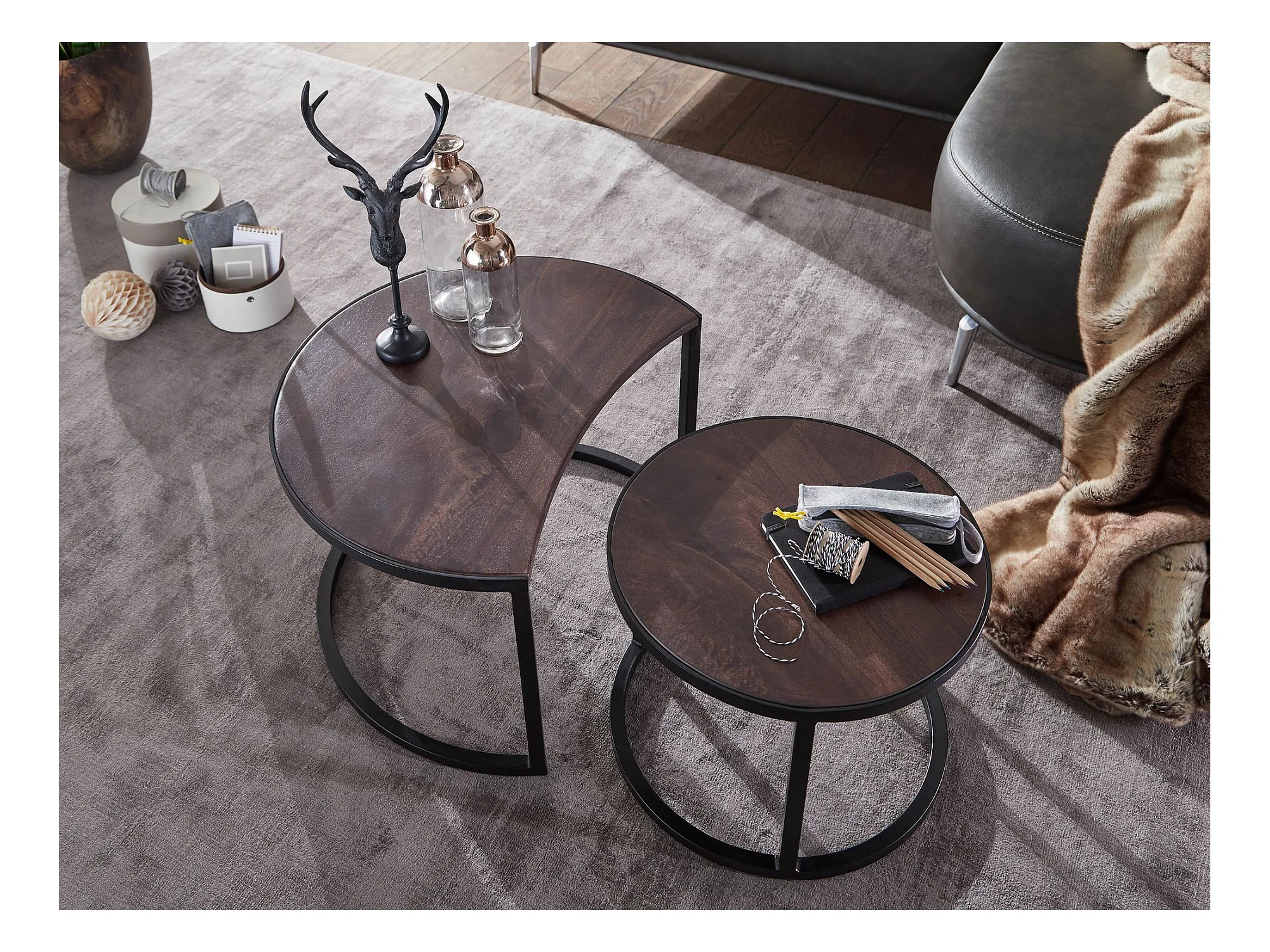 Tables Gigogne Bois Massif Ronde Table d'appoint Lot de 2 Table Basse