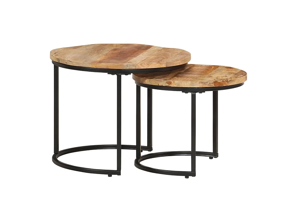 Table basse 2 pièces Bois de manguier brut Rond 40/50 cm