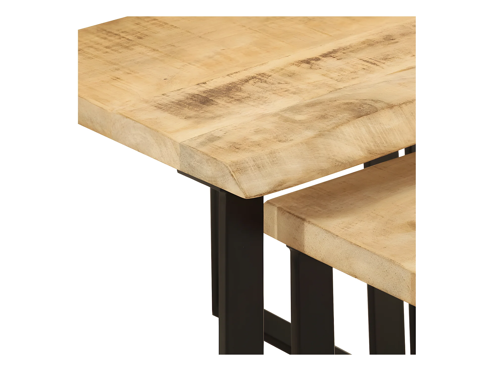 Tables basses gigognes 3pcs bois de manguier massif brut et fer