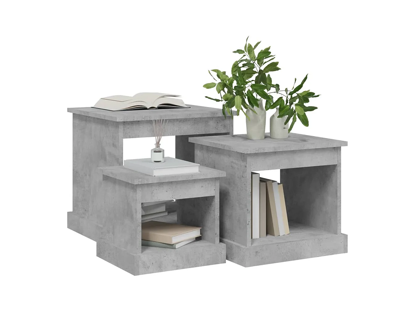 Tables gigognes 3 pcs gris béton bois d'ingénierie