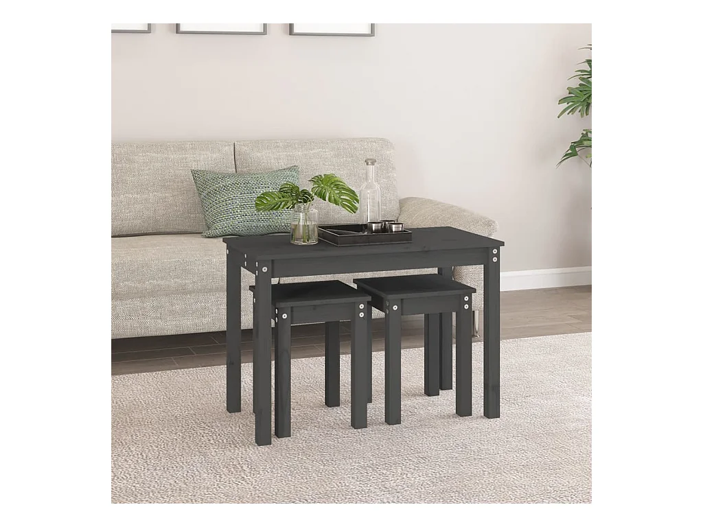 Tables gigognes 3 pcs Gris Bois de pin massif