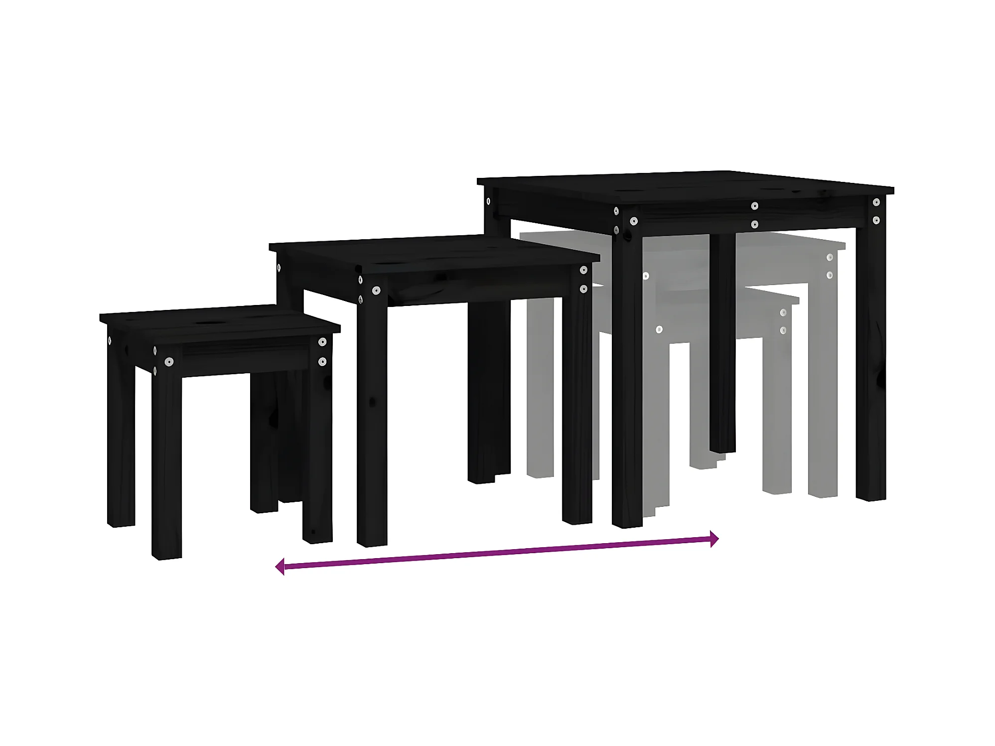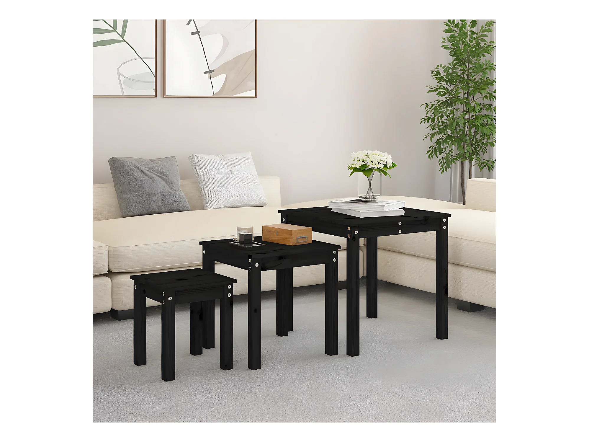 Tables gigognes 3 pcs Noir Bois de pin massif GHR62087