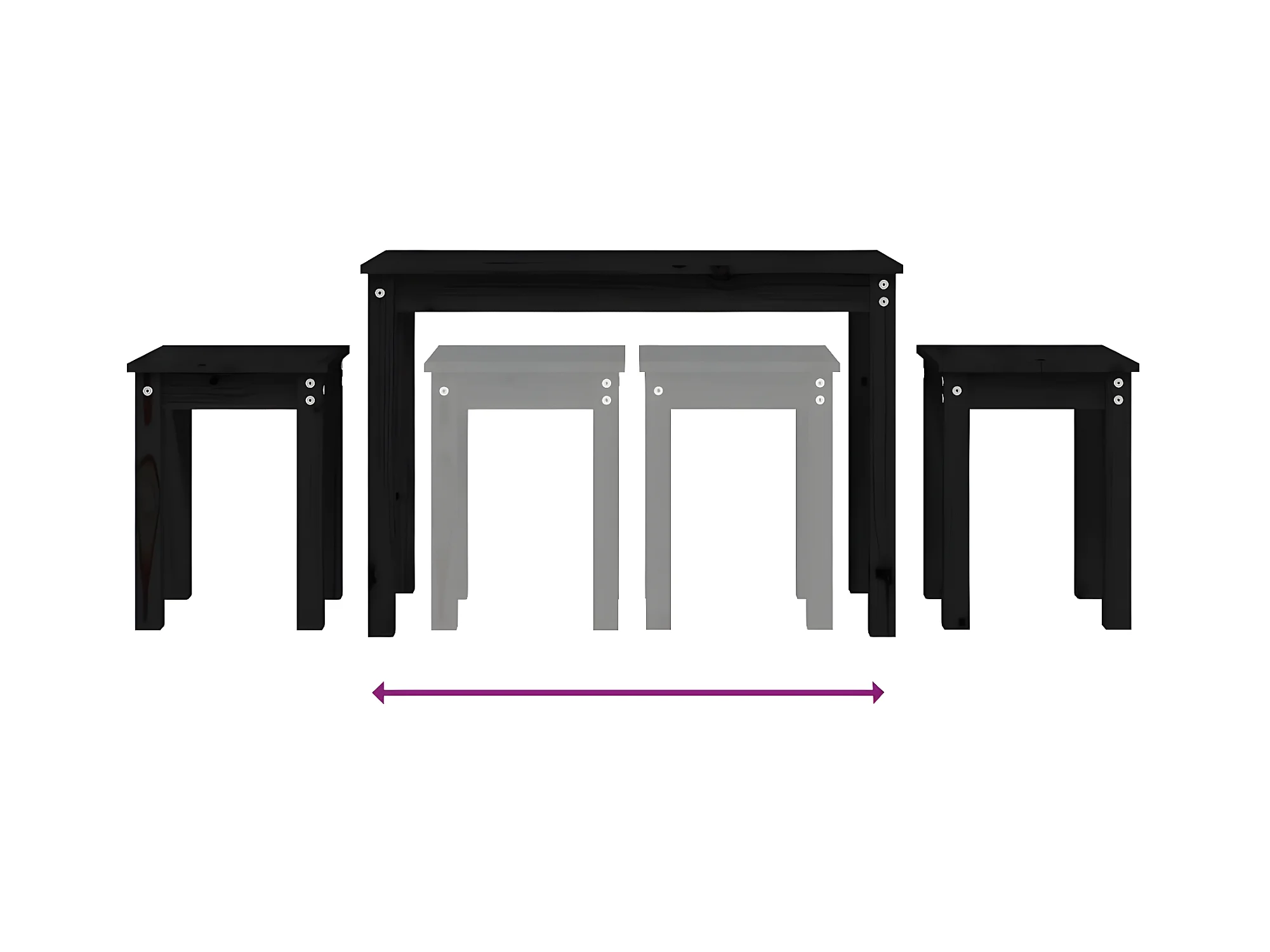 Tables gigognes 3 pcs Noir Bois de pin massif GHR62087