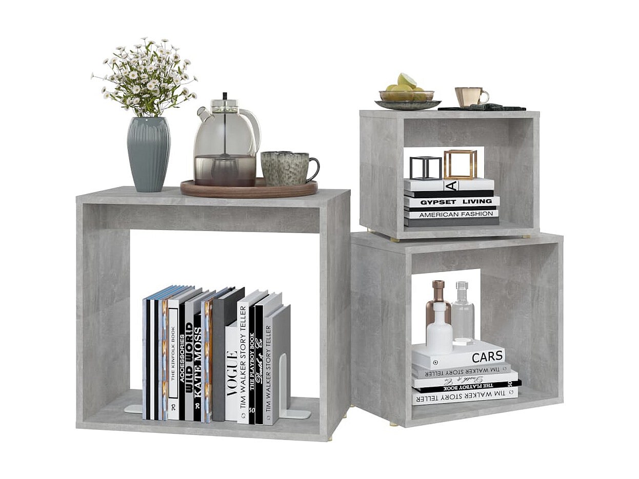 Tables basses gigognes 3 pcs Gris béton Aggloméré GHR36764