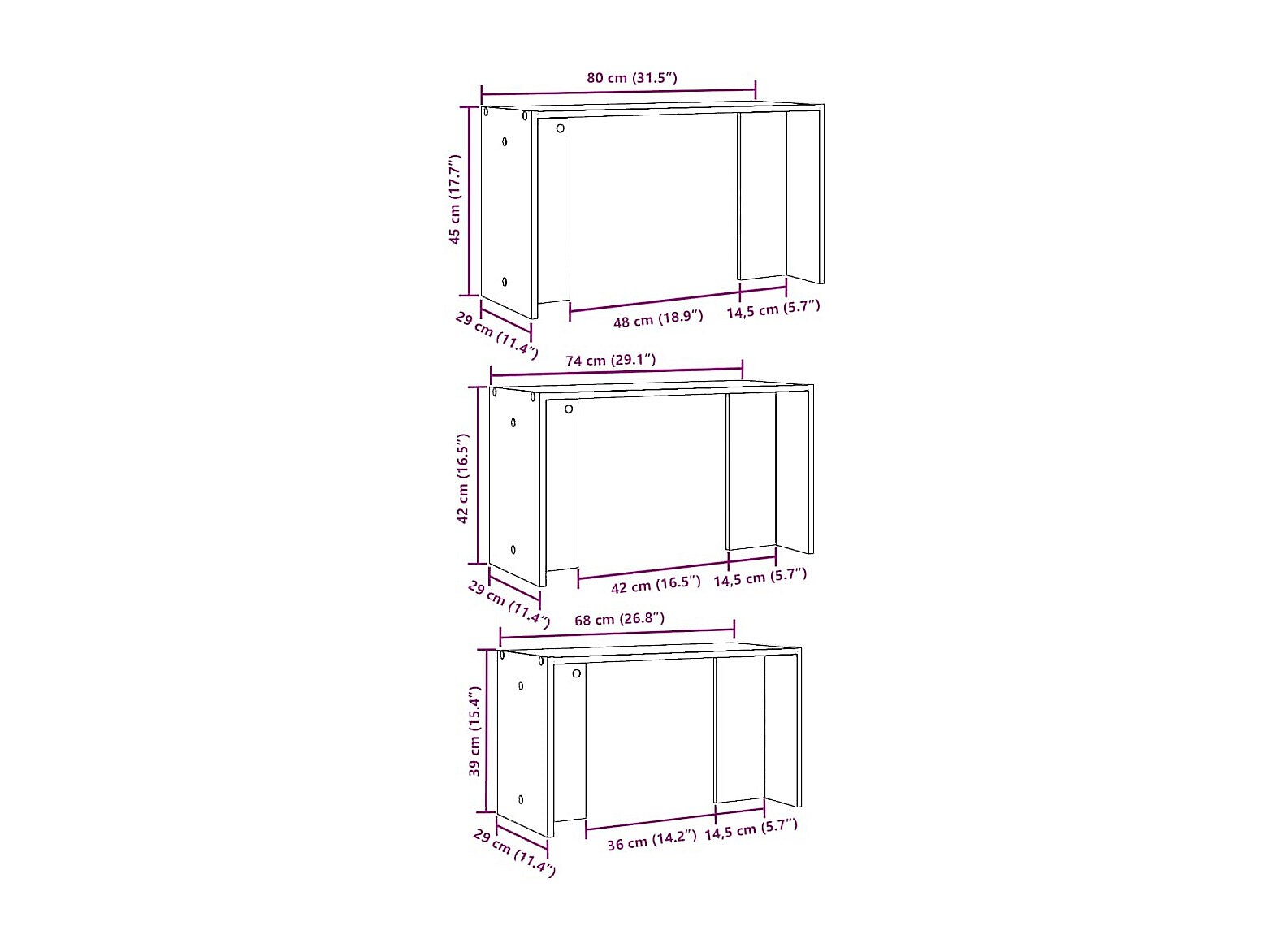 Table basse gigogne 3 pièces Chêne noir 60 x 35 x 56 cm