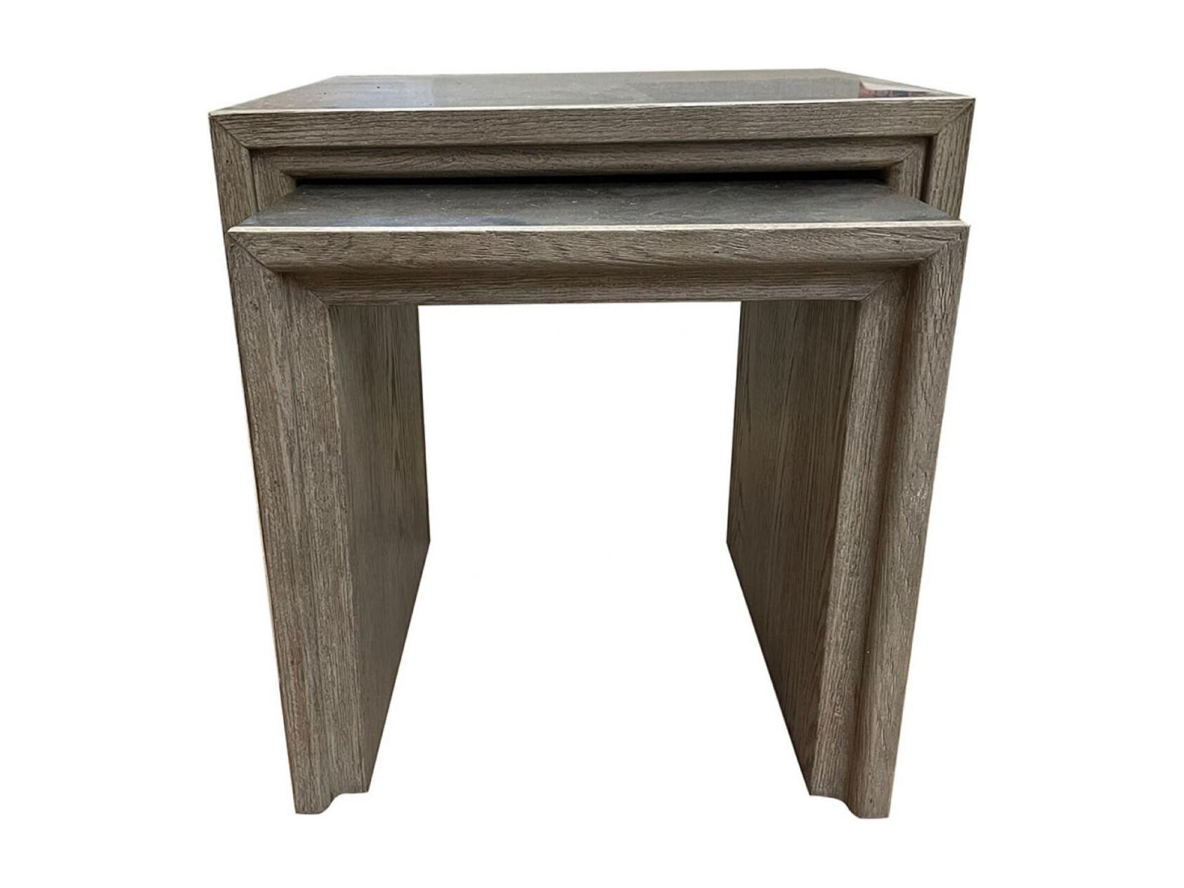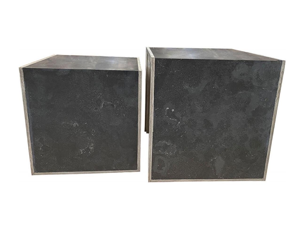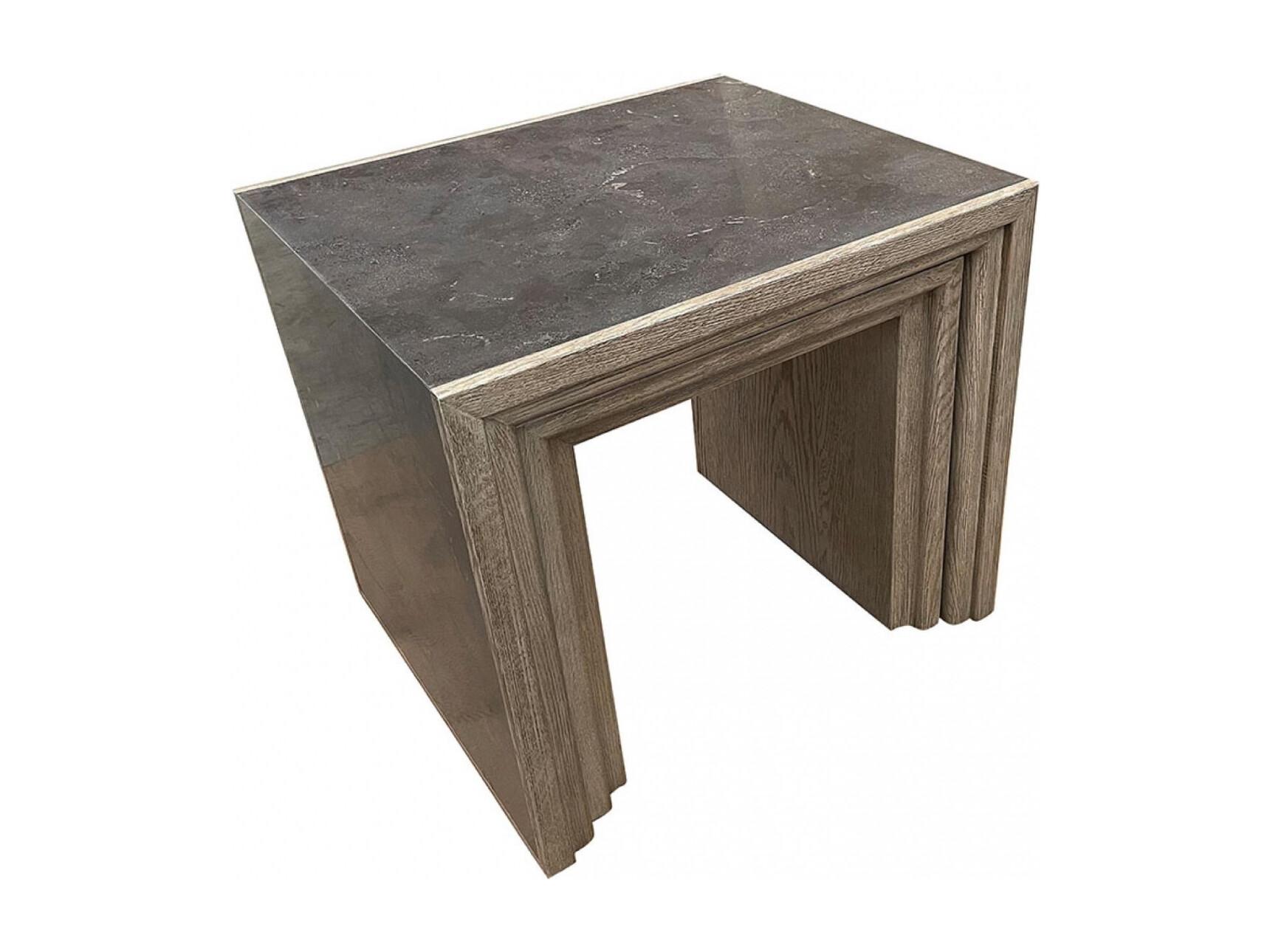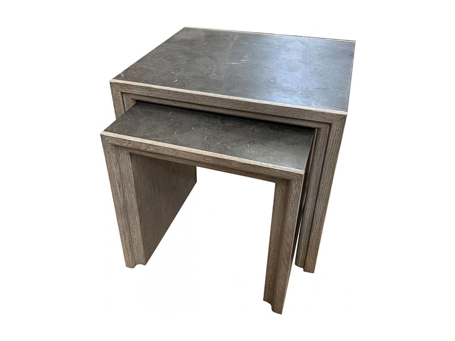 Tables gigognes plateau pierre bleue et alèse chêne Pierre Naturelle Noir - Minéral Interior's