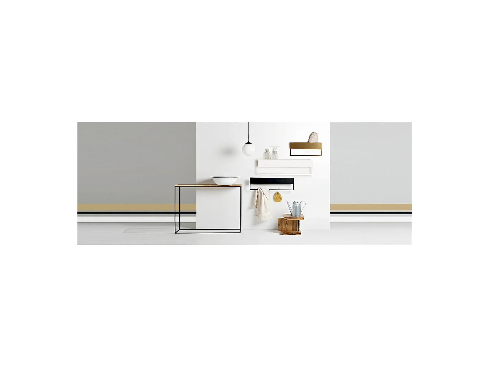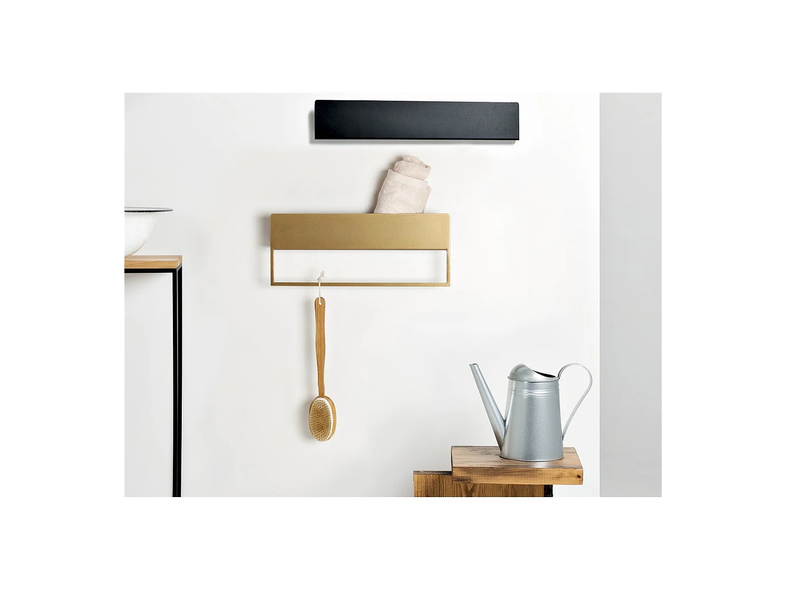 Étagère murale MCW-K78, blanc, métal doré