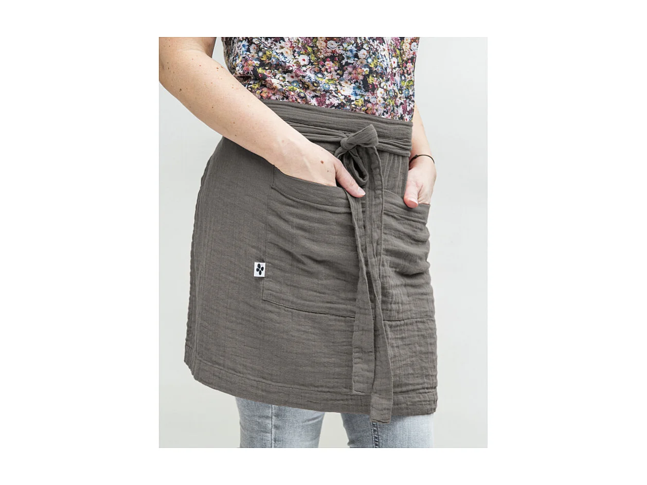 OUREA - Demi-Tablier avec Double Poche Gaze de Coton Granit