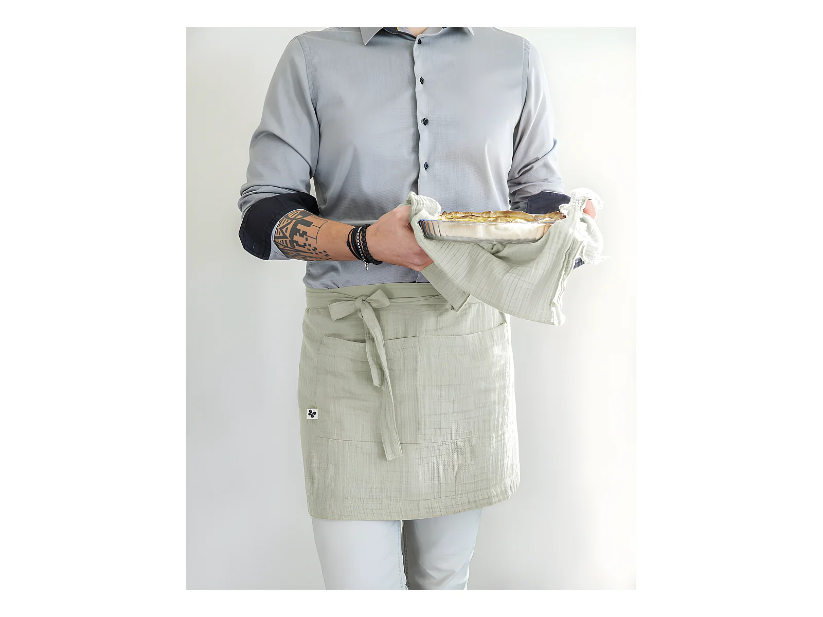 OUREA - Demi-Tablier avec Double Poche Gaze de Coton Romarin